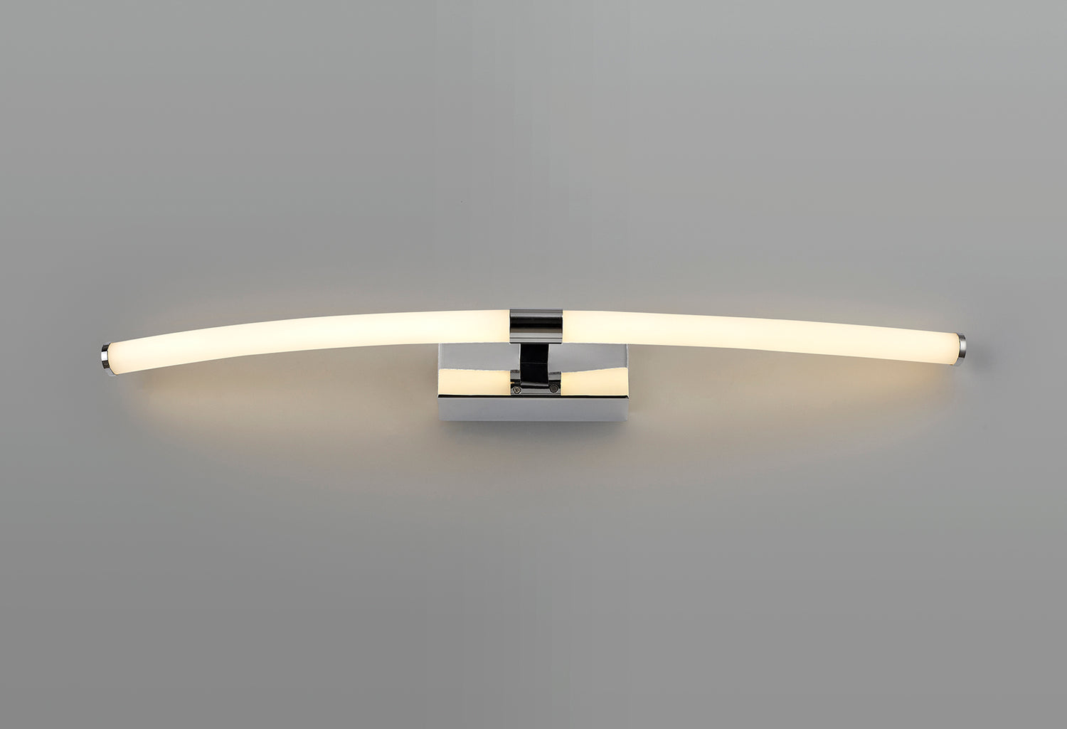 Altais's slim sleek design, available in two sizes, creates an unassuming wall lamp with optimum illumination. The high powered integral 3000K LEDs combined with the IP44 rating and polished chrome/opal white colour finish, make it an ideal over mirror bathroom light whilst the curved shape also enables the fixture to be used as a modern picture light.