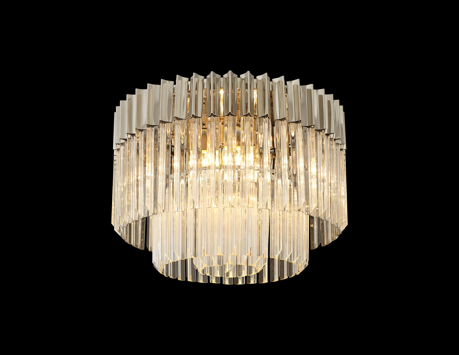 This divine 7 light ceiling light comes from the Hillano Adhil range, the item code for this product is ADH1428. The 7 light semi-flush ceiling light comes in a polished nickel finish complete with elegant clear sculpted glass. The 41cm height makes this ideal for low ceilings.