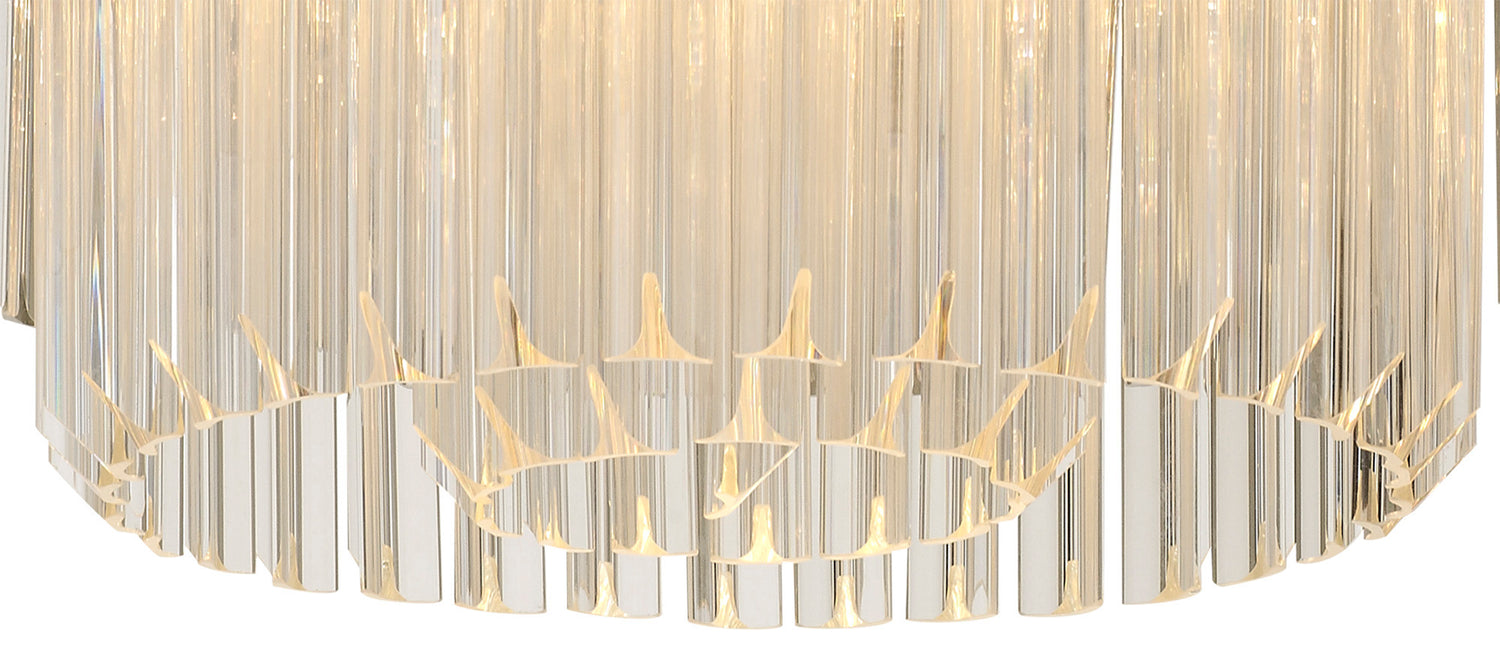 The popularity of the Adhil collections initial release has been so overwhelming that the collection has now been extensively expanded to meet a wider range of specification needs. The long angular shape of the glass which are in a tiered form, can now be found on larger more dramatic designs including a five tier and rectangular pendant to name only a few. Adhil has a traditional regal effect composed with modern materials to create a range suitable for either a modern or more traditional room setting. The unique pyramid forms protruding from the frame provide an intriguing overall shape across this comprehensive collection. To view the full range type 'Adhil' into the search box.