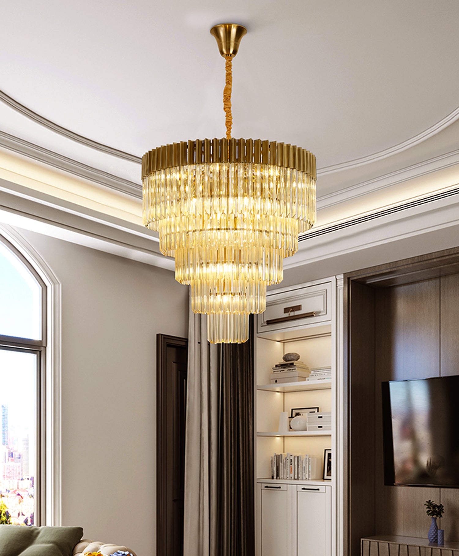 ADH1898 Adhil Round 19 Light 5 Tier Ceiling Pendant Brass/Cognac