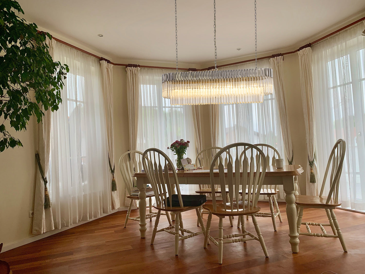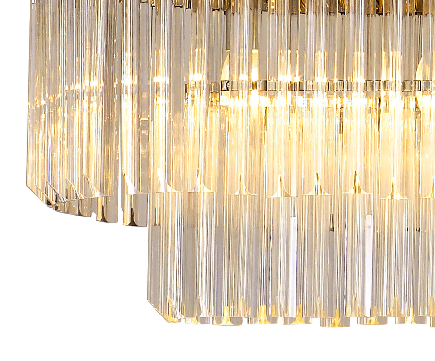 The popularity of the Adhil collections initial release has been so overwhelming that the collection has now been extensively expanded to meet a wider range of specification needs. The long angular shape of the glass which are in a tiered form, can now be found on larger more dramatic designs including a five tier and rectangular pendant to name only a few. Adhil has a traditional regal effect composed with modern materials to create a range suitable for either a modern or more traditional room setting. The unique pyramid forms protruding from the frame provide an intriguing overall shape across this comprehensive collection. To view the full range type 'Adhil' into the search box.