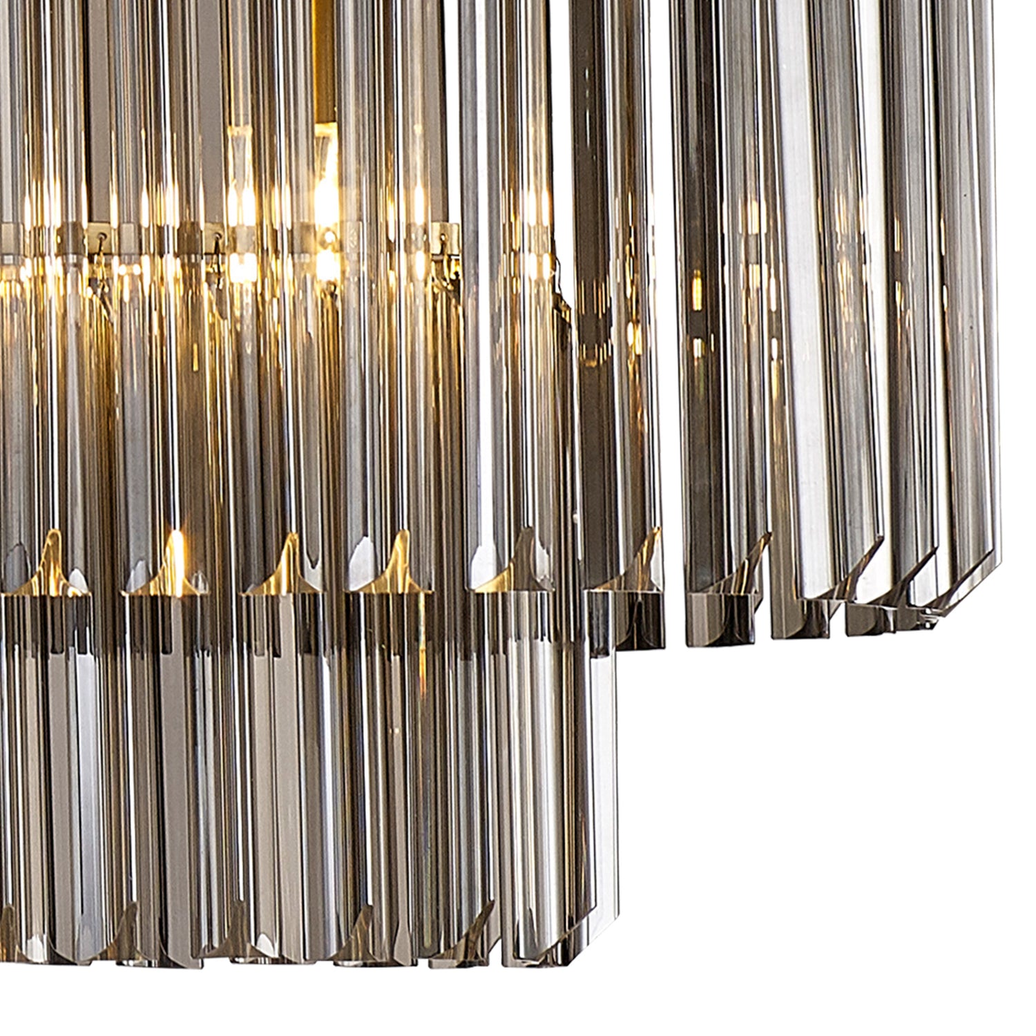 The popularity of the Adhil collections initial release has been so overwhelming that the collection has now been extensively expanded to meet a wider range of specification needs. The long angular shape of the glass which are in a tiered form, can now be found on larger more dramatic designs including a five tier and rectangular pendant to name only a few. Adhil has a traditional regal effect composed with modern materials to create a range suitable for either a modern or more traditional room setting. The unique pyramid forms protruding from the frame provide an intriguing overall shape across this comprehensive collection. To view the full range type 'Adhil' into the search box.