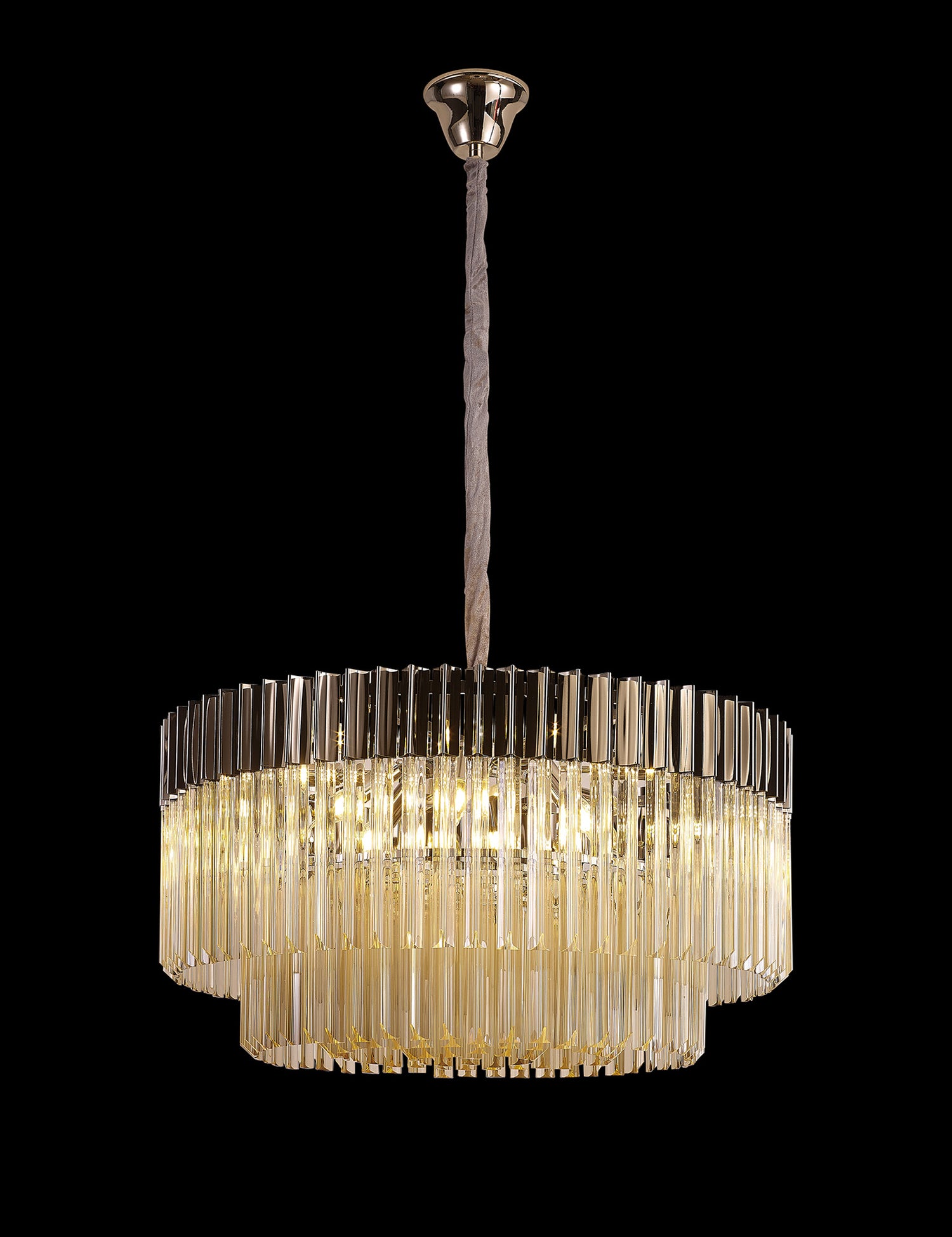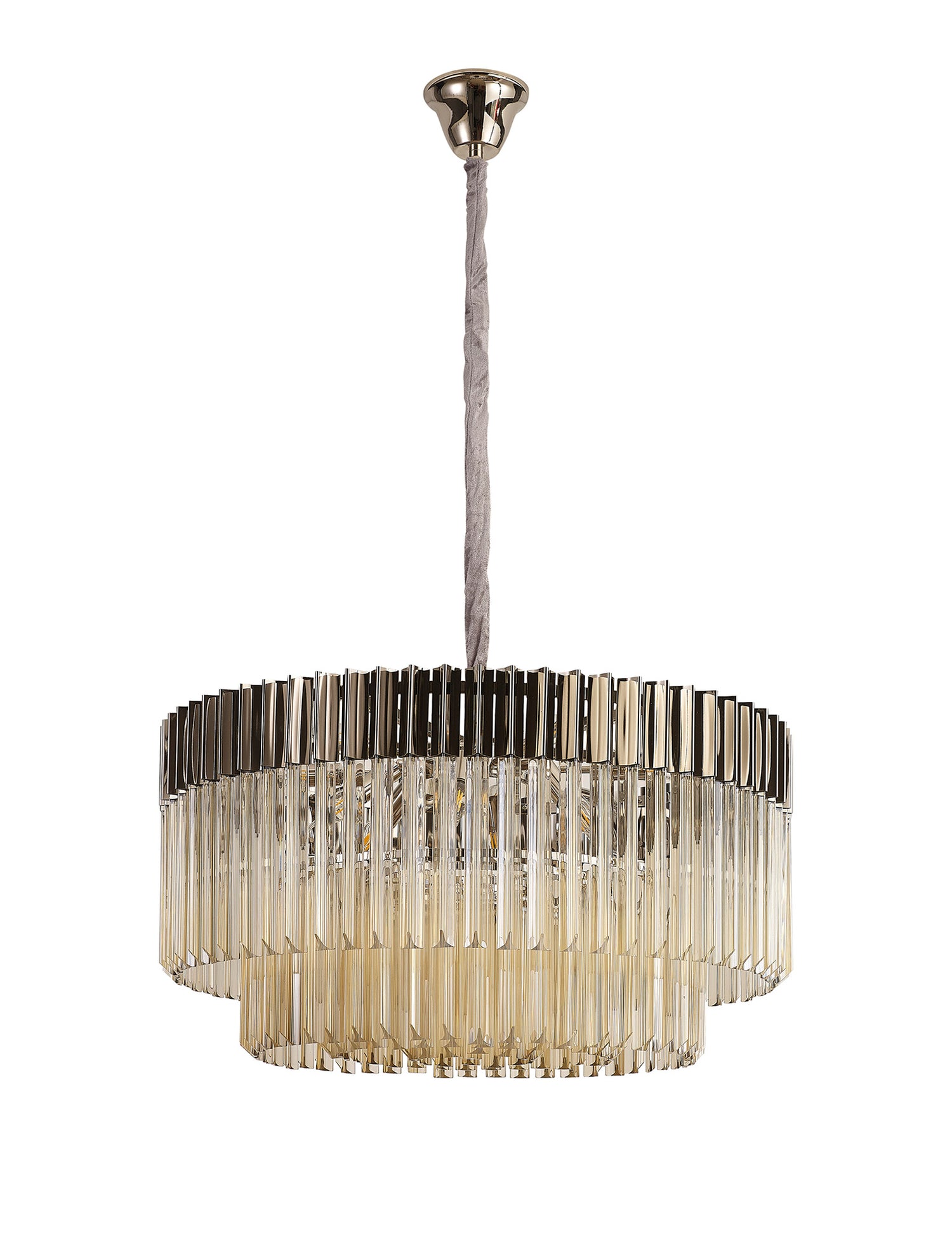 ADH6798 Adhil Round 12 Light Ceiling Pendant Polished Nickel/Cognac