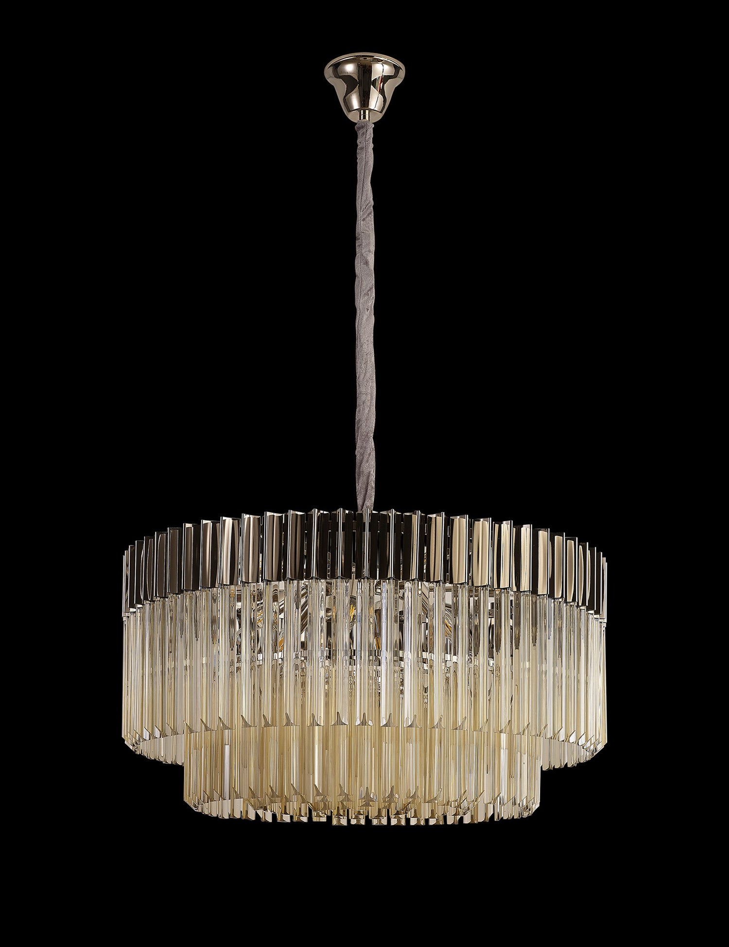 This exclusive statement 12 light pendant comes from the Hillano Adhil range, the item code for this product is ADH6798. The elegant 12 Light pendant comes in a polished nickel finish complete with divine cognac sculpted glass.