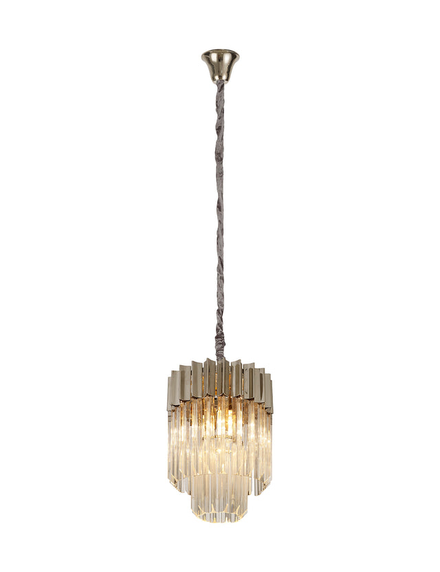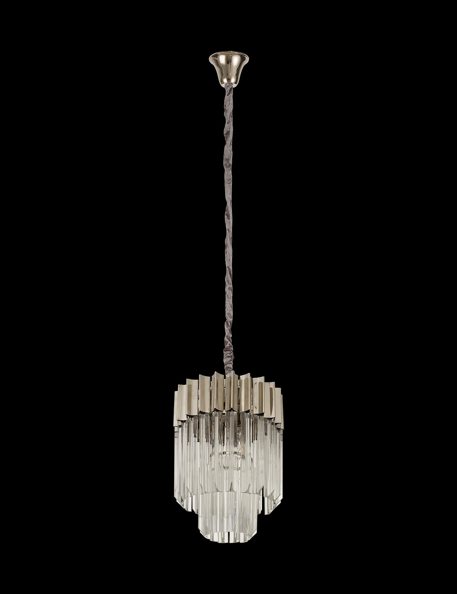 The popularity of the Adhil collections initial release has been so overwhelming that the collection has now been extensively expanded to meet a wider range of specification needs. The long angular shape of the glass which are in a tiered form, can now be found on larger more dramatic designs including a five tier and rectangular pendant to name only a few. Adhil has a traditional regal effect composed with modern materials to create a range suitable for either a modern or more traditional room setting. The unique pyramid forms protruding from the frame provide an intriguing overall shape across this comprehensive collection. To view the full range type 'Adhil' into the search box.