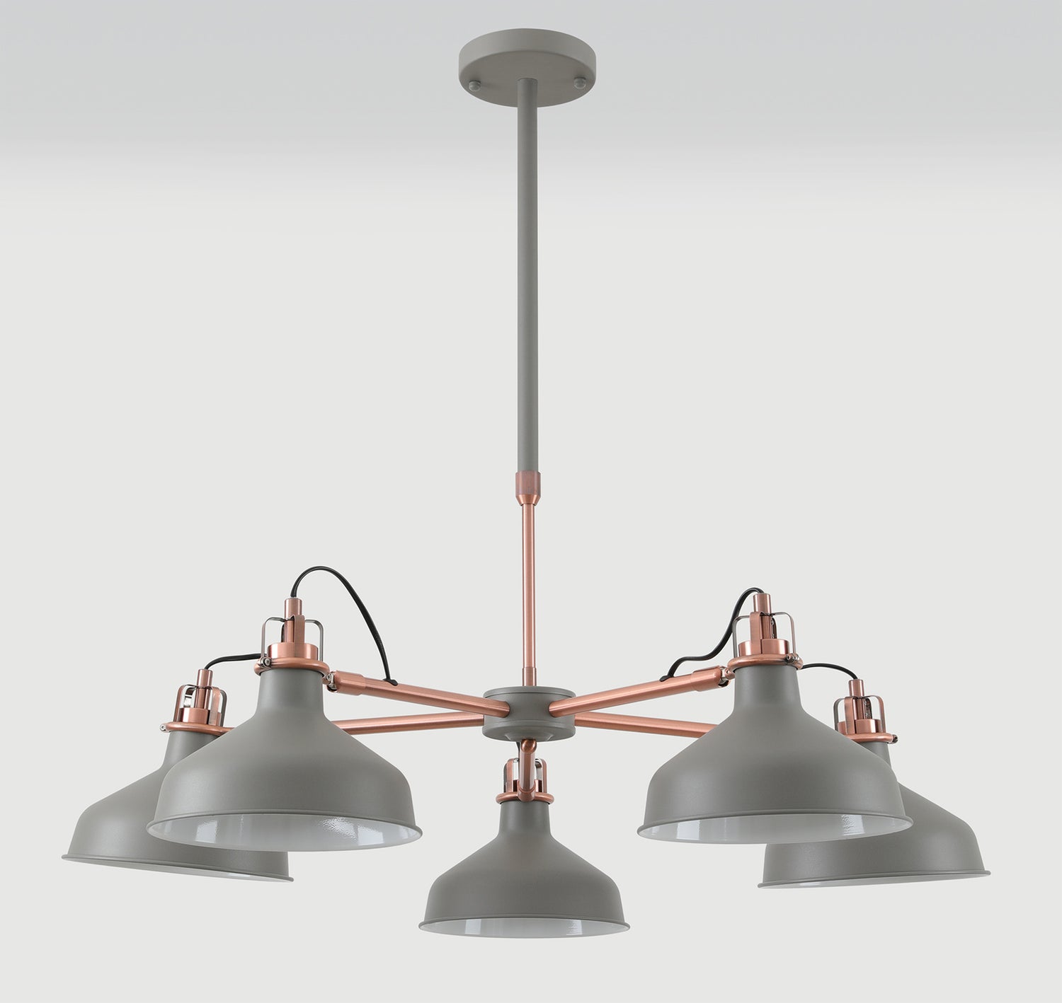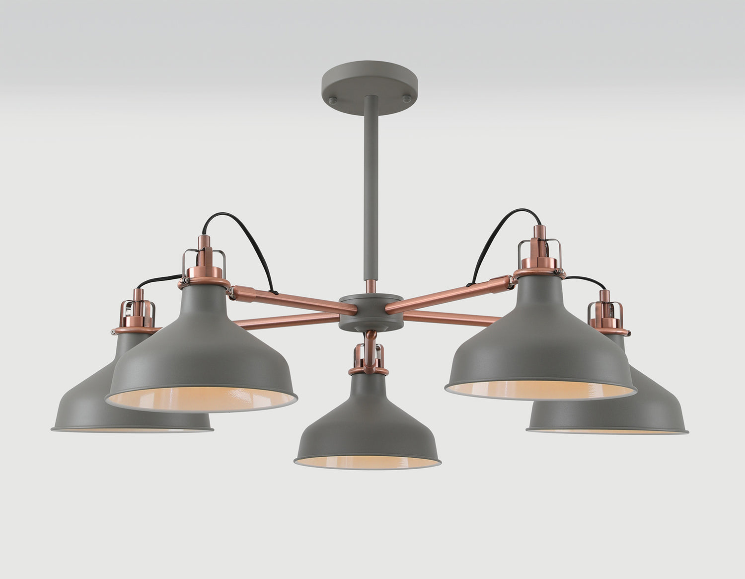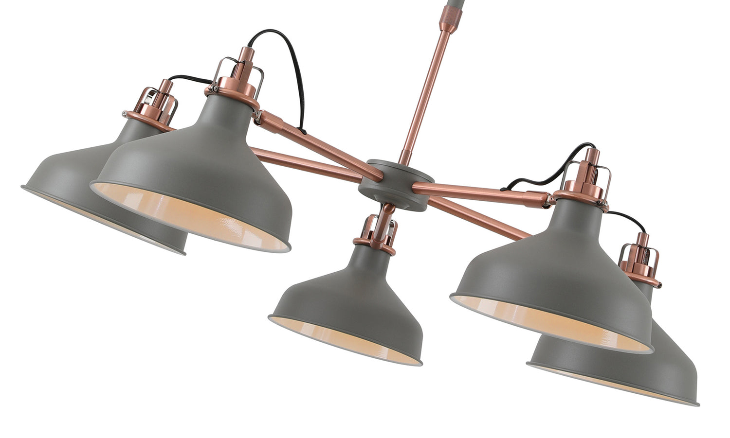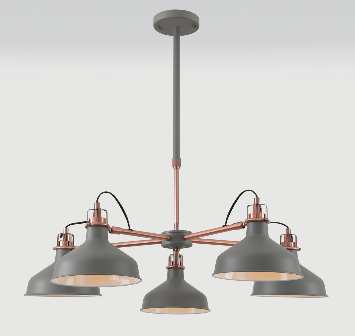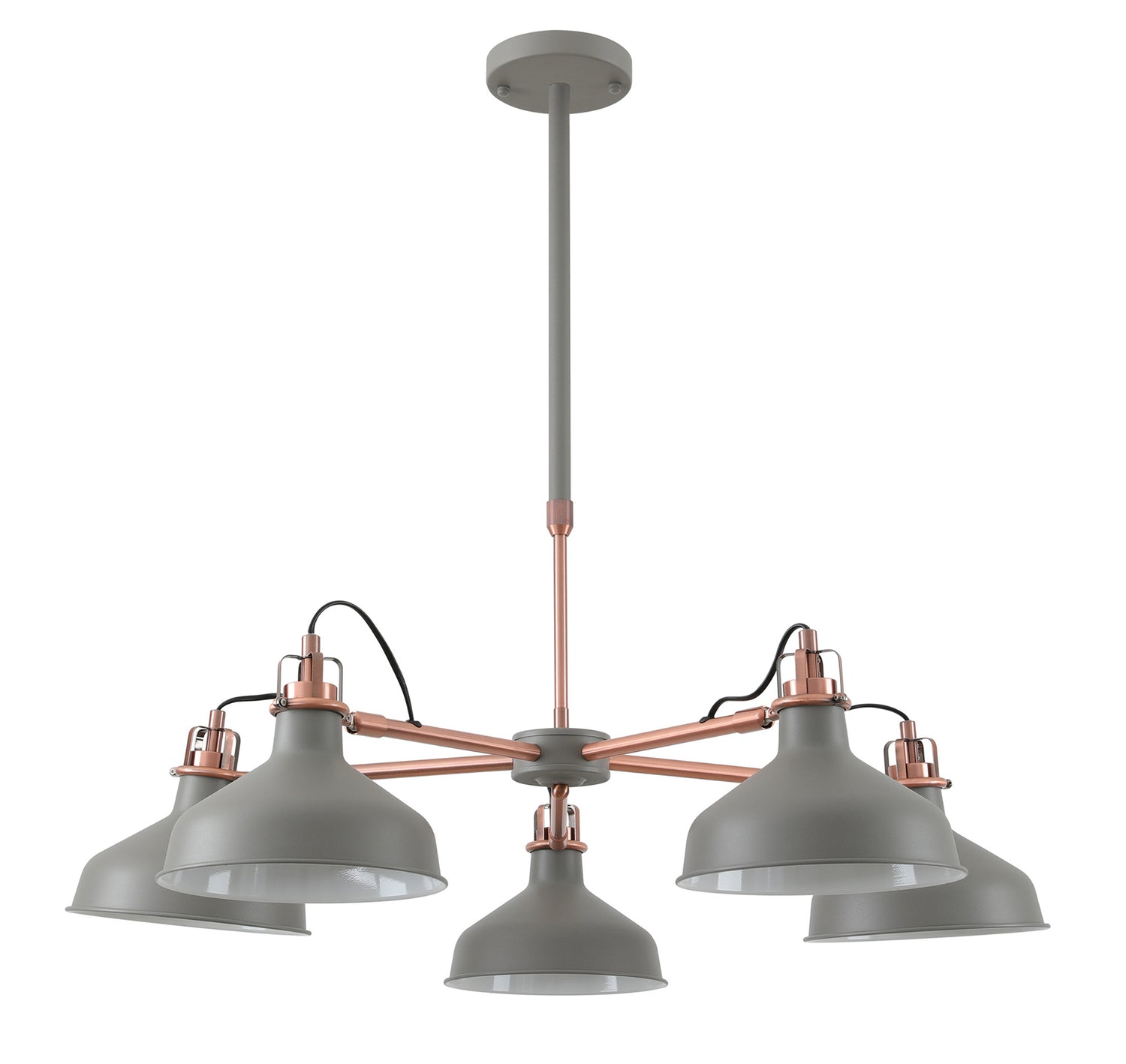 BEL0207 Belel Telescopic Pendant 5 Light in a Sand Grey/Copper/White Finish