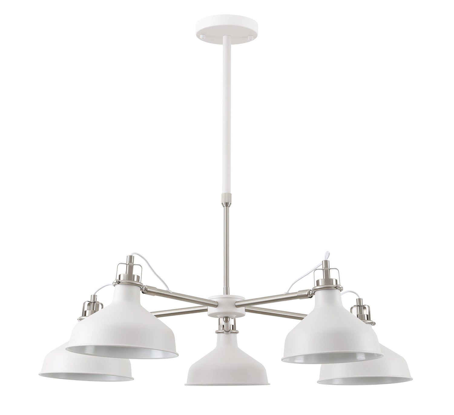 BEL1207 Belel Telescopic Pendant 5 Light in a Sand White/Satin Nickel/White Finish