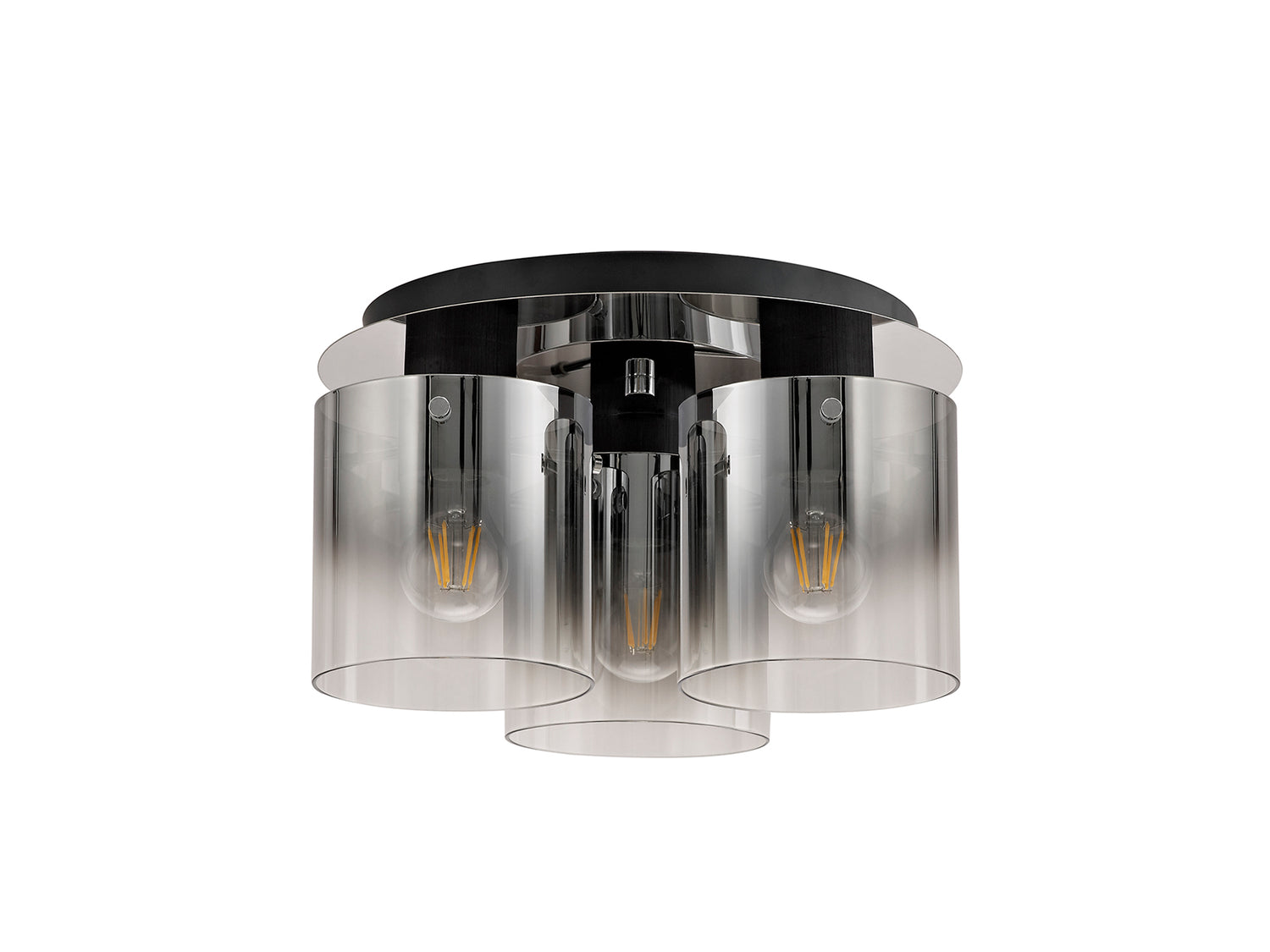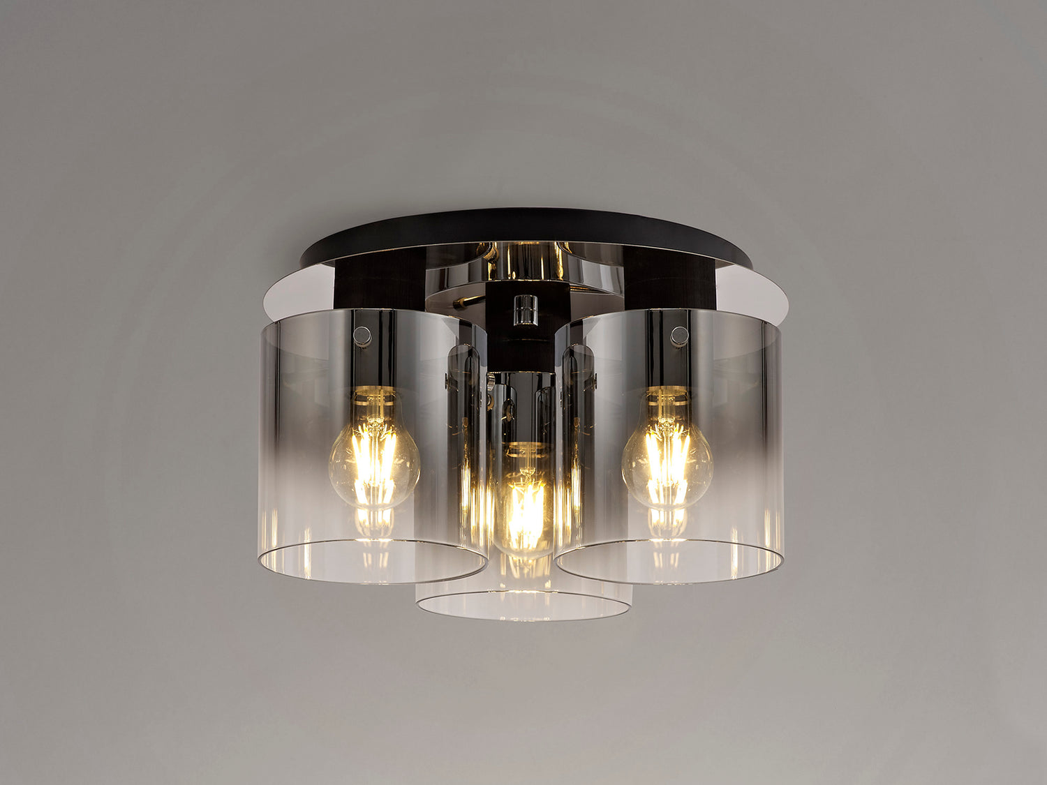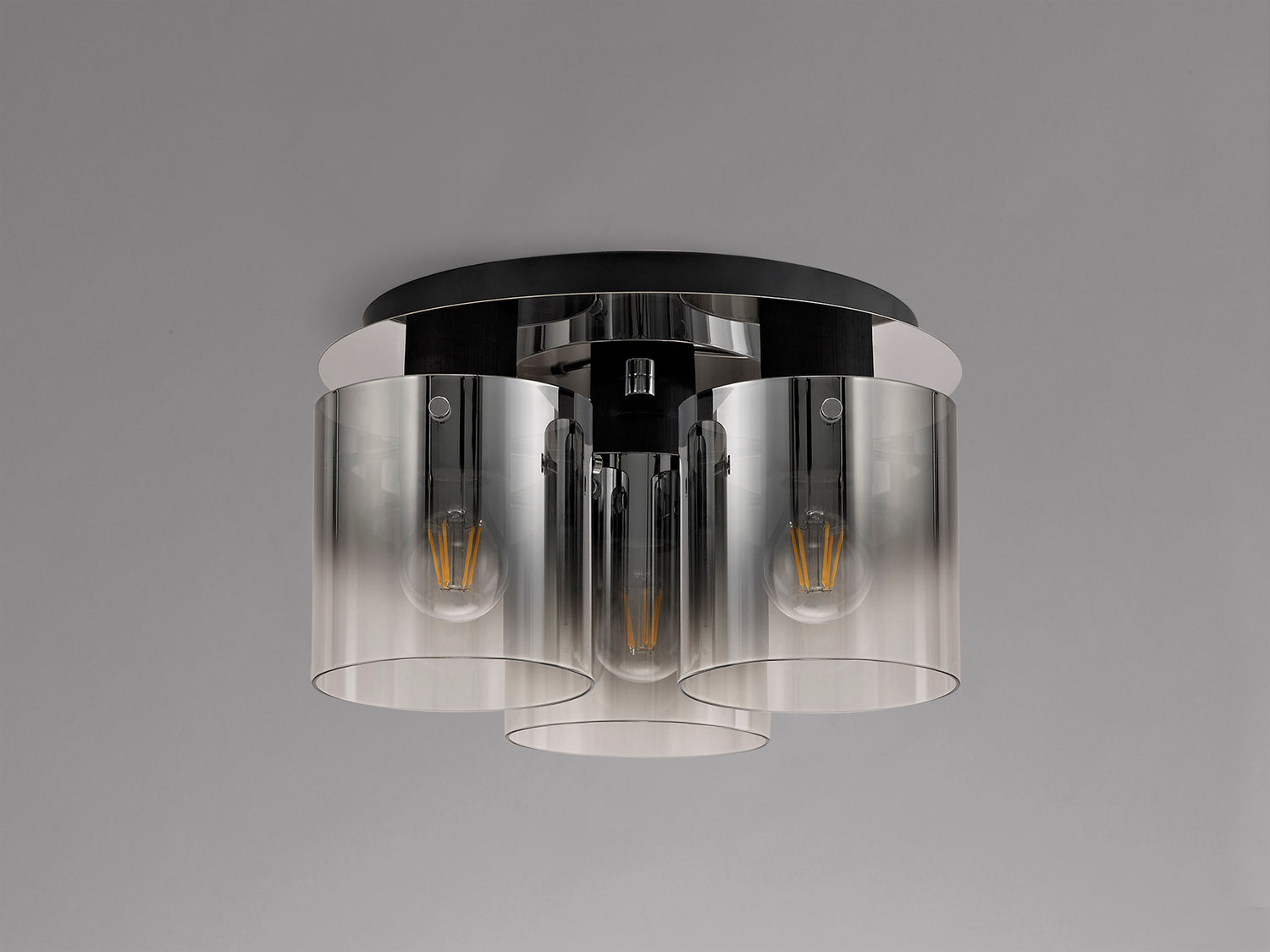 BUN3957 Bunda Round Ceiling 3 Light in a Black/Chrome/Smoke Fade Finish
