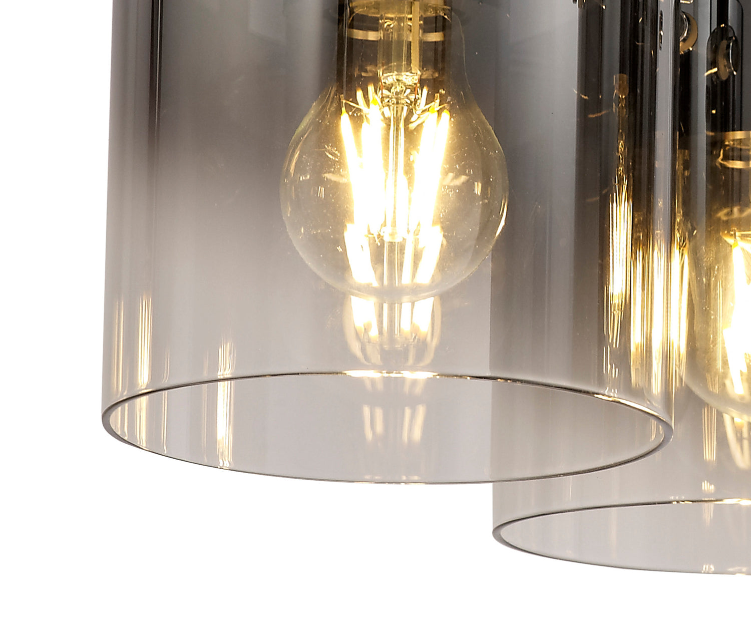 In keeping with our reputation for uncommon stand out designs, Bunda capitalises on the intriguing ombré effect by applying the finish to substantial smoked to black glass cylinders which sit around the E27 lampholders. Due to the initial overwhelming success this range has been expanded and the feature has been used to manufacture a wider range of ceiling lights, pendants and complementing wall and table lamp now also available in a Mocha and complete amber glass finish.