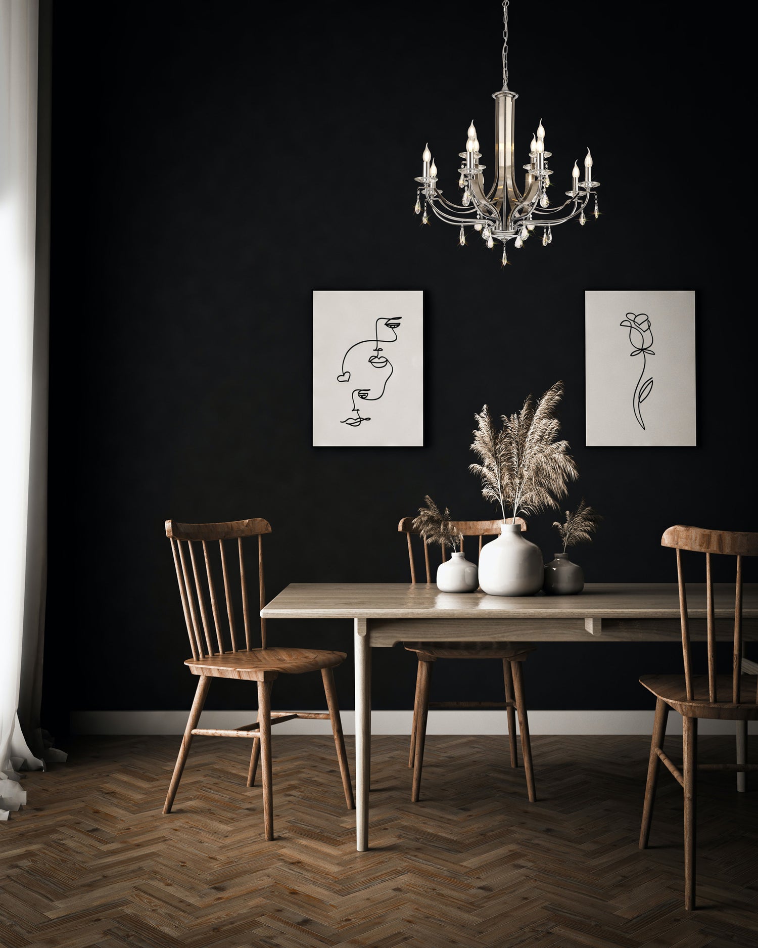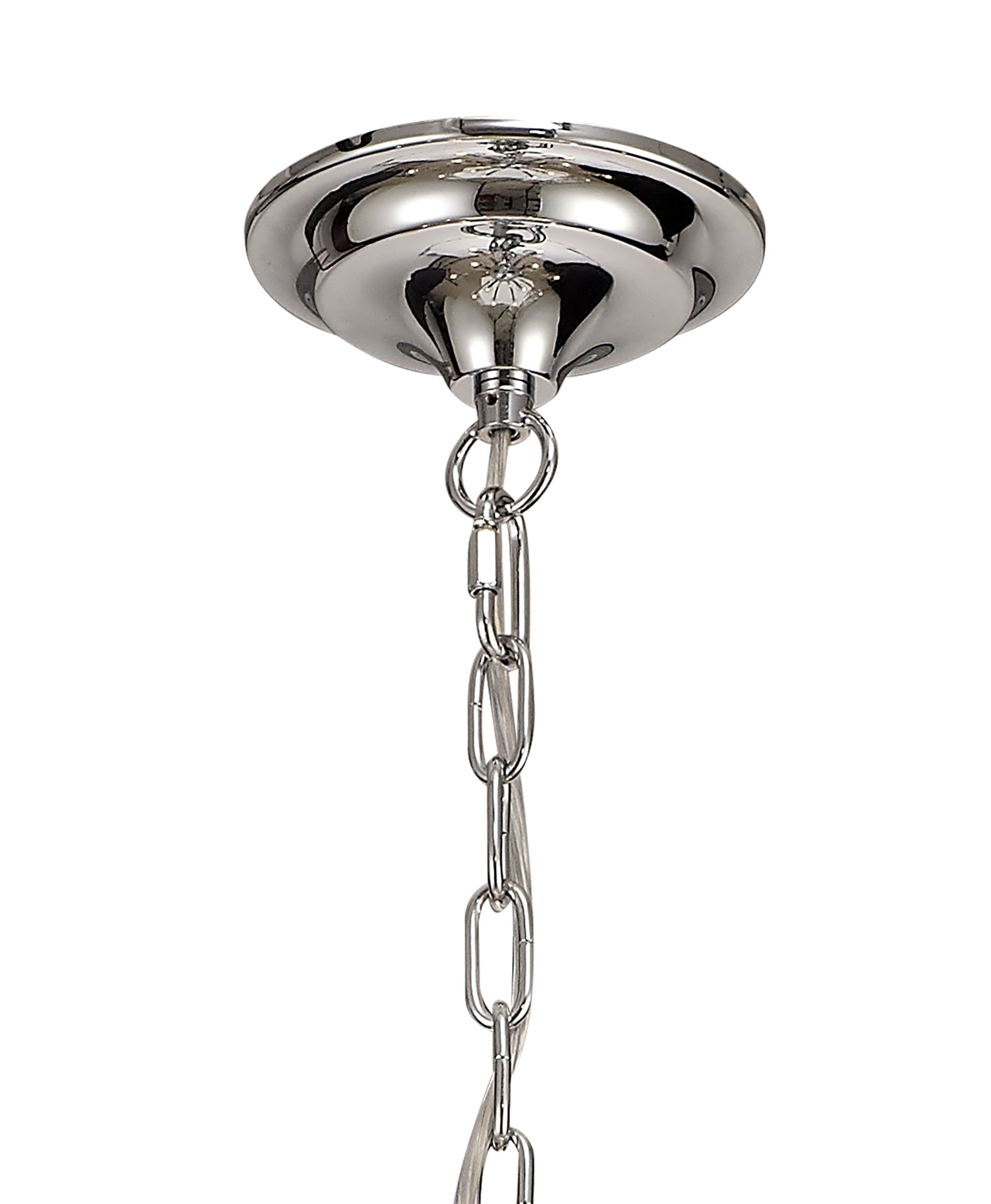Koeia combines modern and traditional components to create a comprehensive contemporary collection of pendants and wall lamps. The classic chandelier design concept has been modernised with a polished chrome finish and an abundance of stunning crystals drops which adorn the arms. A slim band of satin nickel metalwork curves above the top of each arm and flows into the centre column of the pendants and back plate of the wall lamps, to add a unique touch seamlessly contrasting the modern aspects of the range.