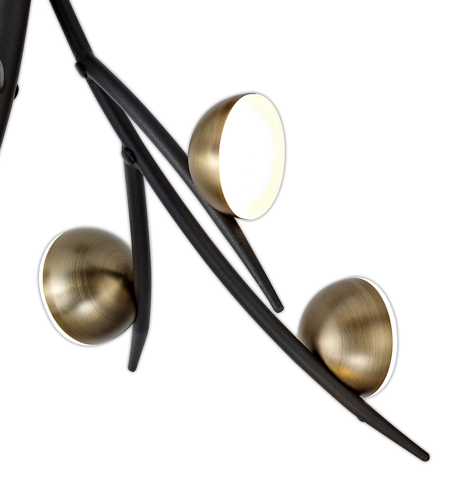 The harmoniously placed, round LED heads are distributed along the sleek fluidic lines to create an art nouveau concept bringing the essence of nature into your home. High quality LED technology partnered with the form of the fixtures and black/antique brass finish provides an idyllic balance. From flush ceiling lights, to a linear pendant and wall lights, Kuma offers a comprehensive range of lighting to suit your room setting.