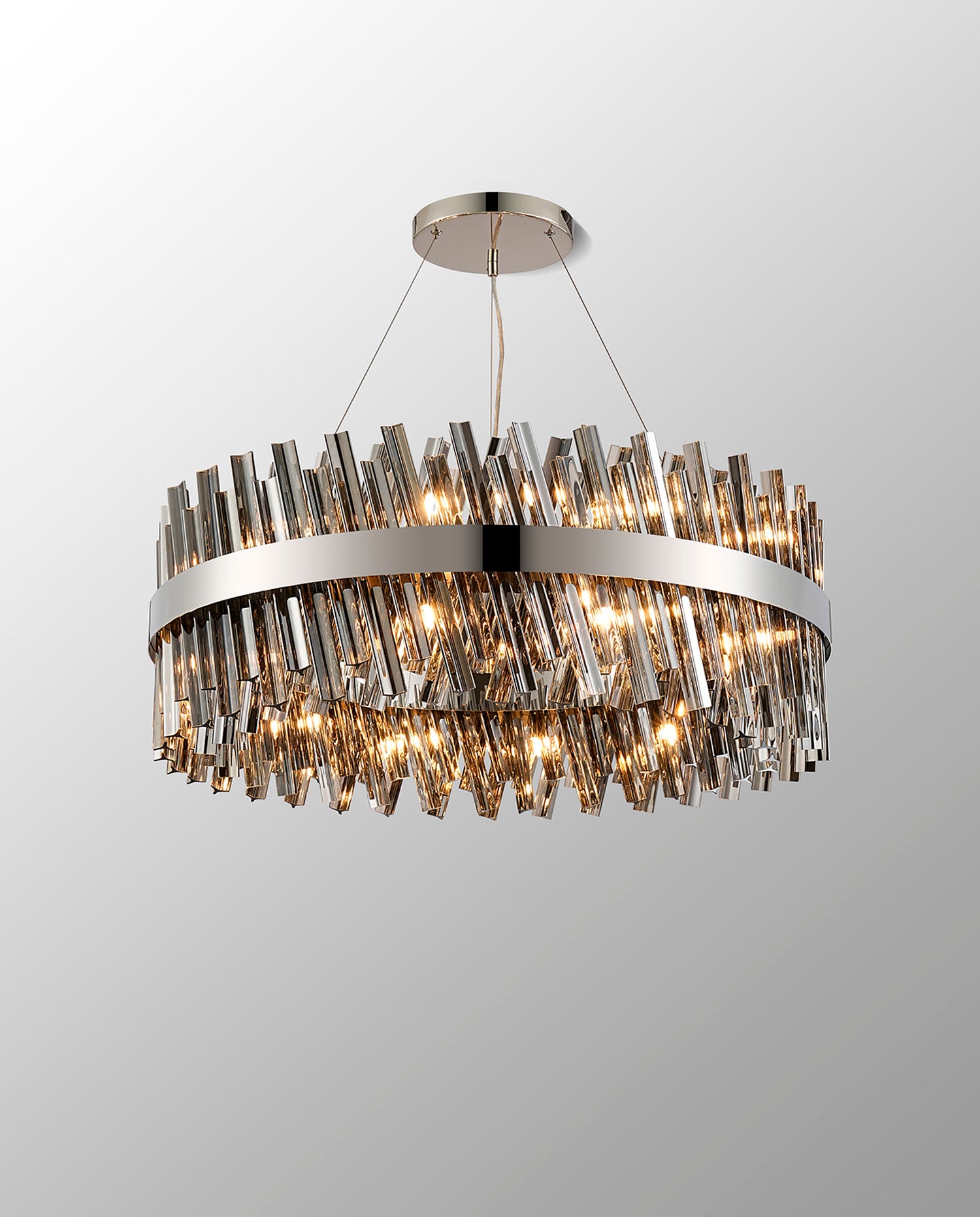 This divine high quality 24 light glass ceiling pendant comes from the Hillano Orion range, the item code for this product is ORI2059PN/SM. The Orion 24 pendant comes in a polished nickel finish complete with smoked glass.