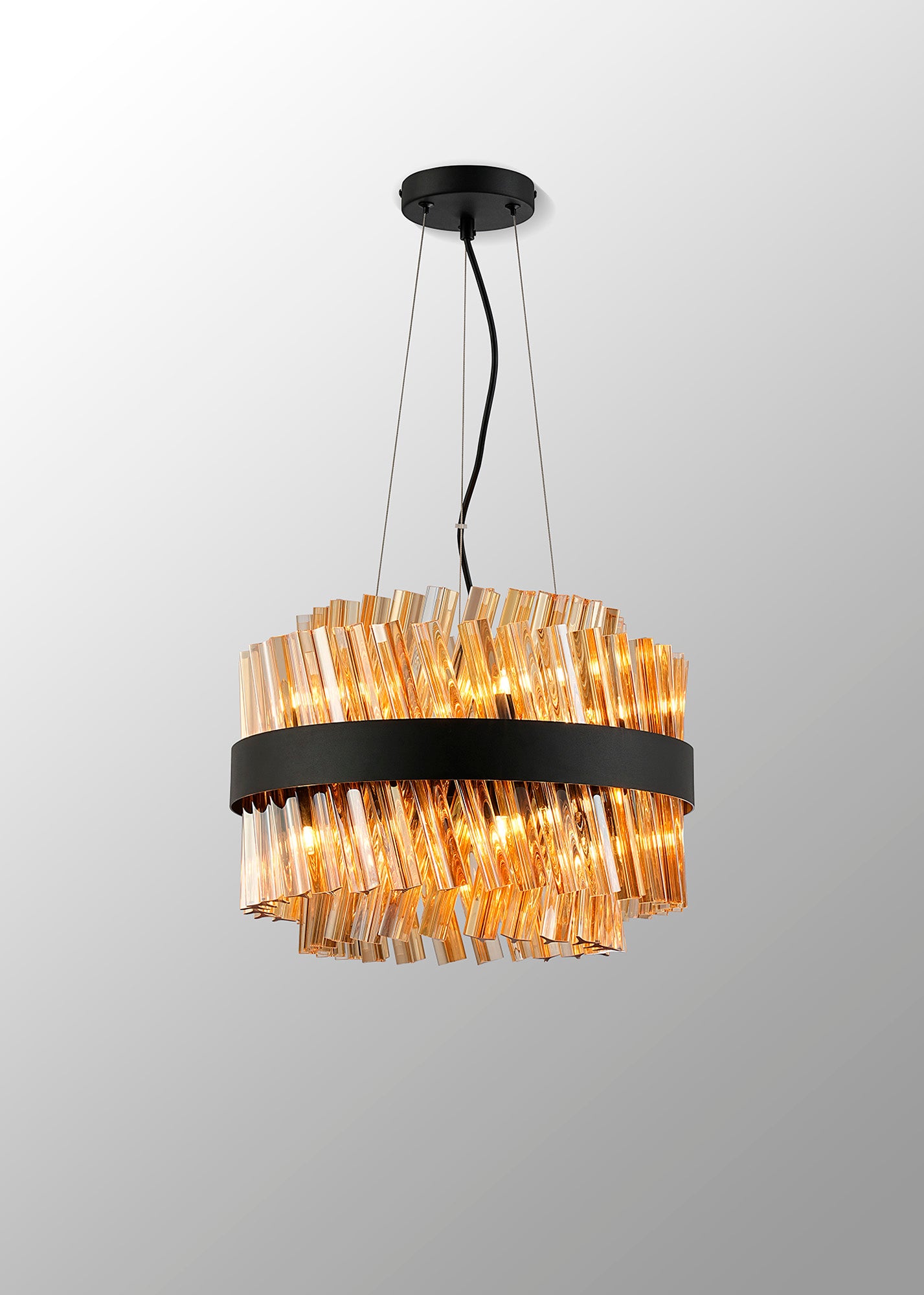 ORI8949BL_AM Orion 10 Light Ceiling Pendant Satin Black_Amber