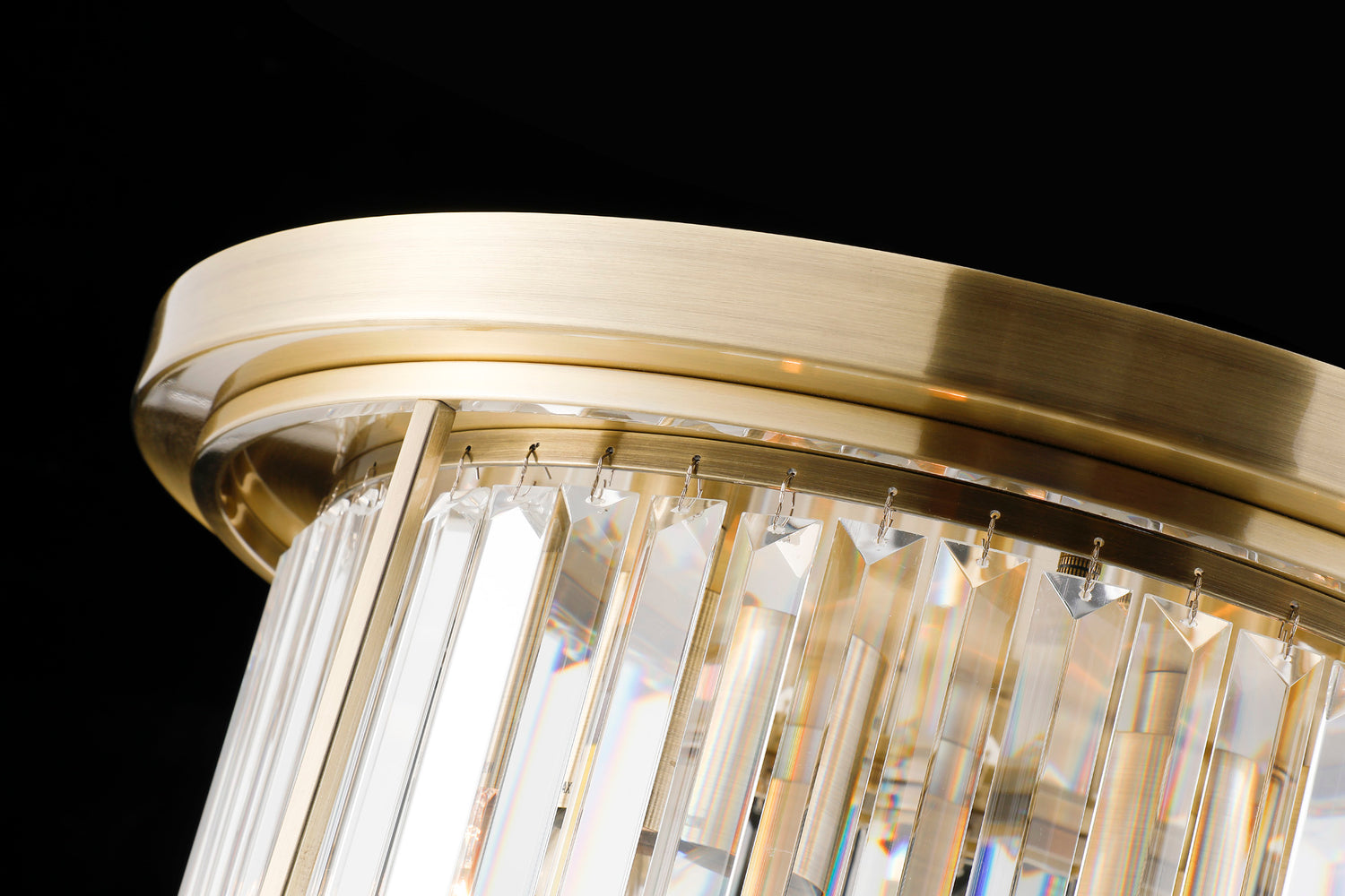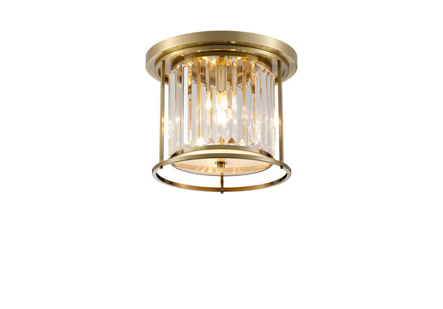 This stunning 3 light crystal ceiling light comes from the Hillano Royal range, item code ROY3319. The 3 light ceiling light comes in a modern antique brass finish complete with elegant prism crystals and a frosted glass diffuser.