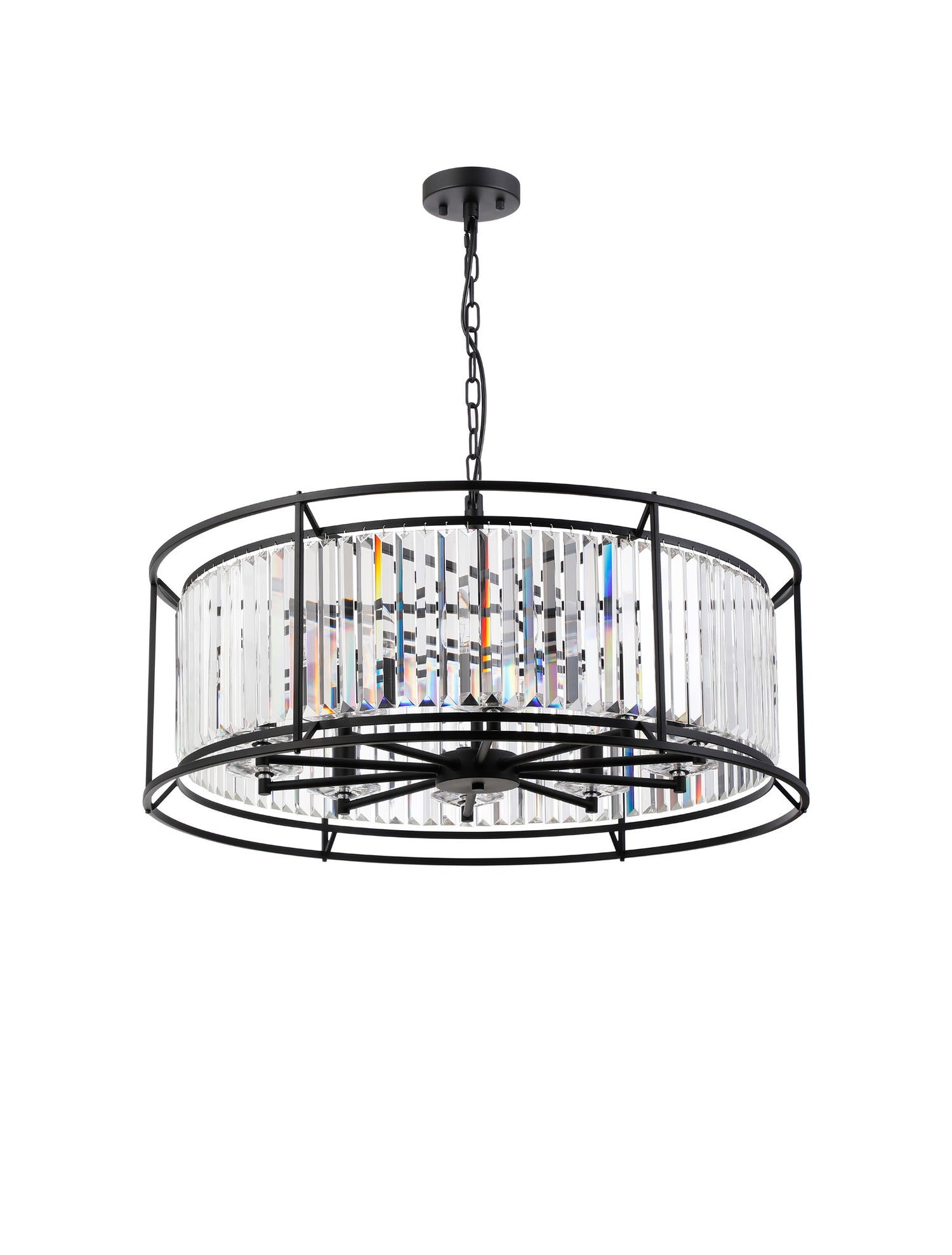 This elegant crystal 10 light pendant comes from the Hillano Royal range, item code ROY5039. The 10 light ceiling light comes in a satin black finish complete with elegant rectangular crystals.