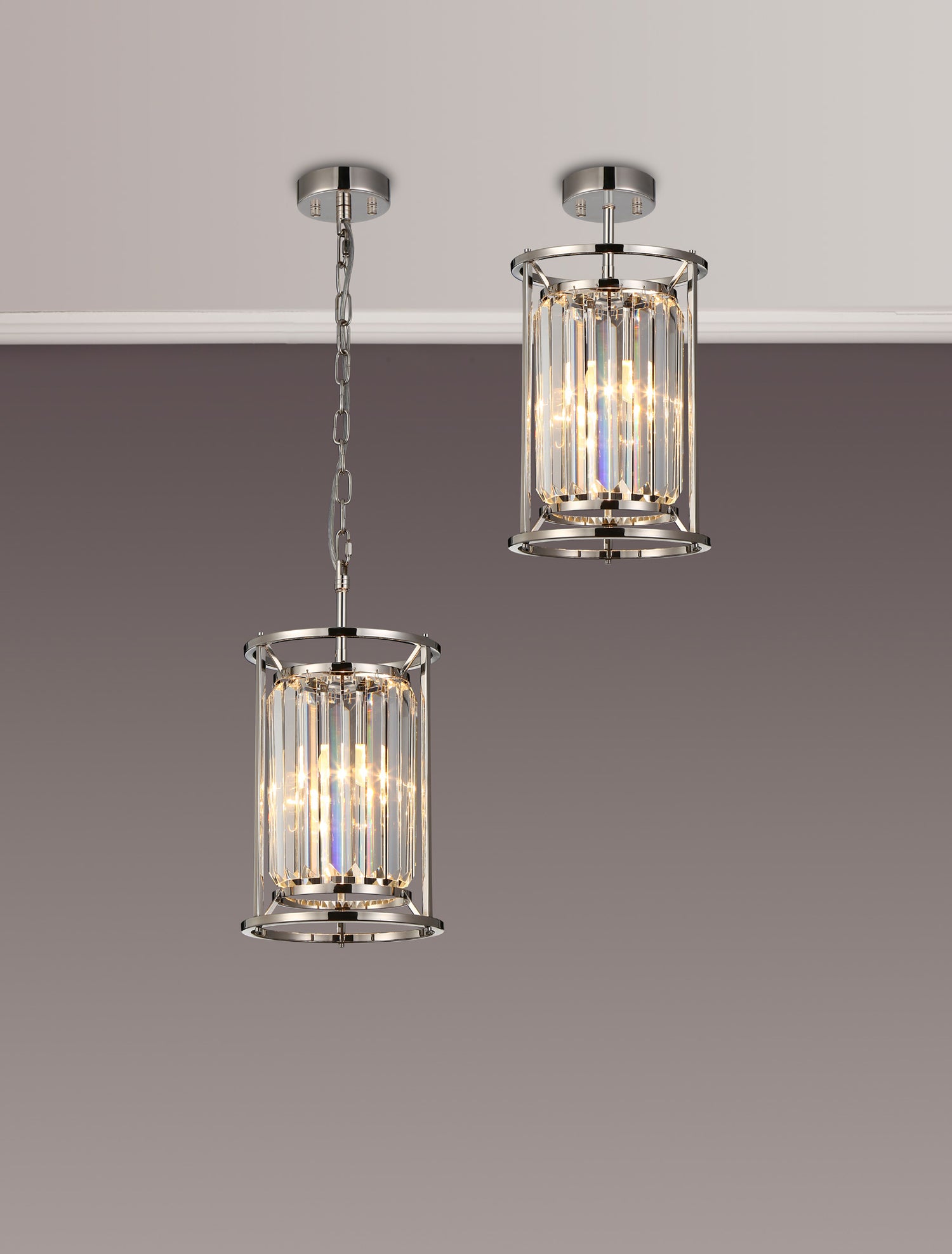 This stunning 1 light crystal pendant comes from the Hillano Royal range, item code ROY6119. The 1 light pendant comes in a polished nickel finish complete with elegant rectangular crystals.