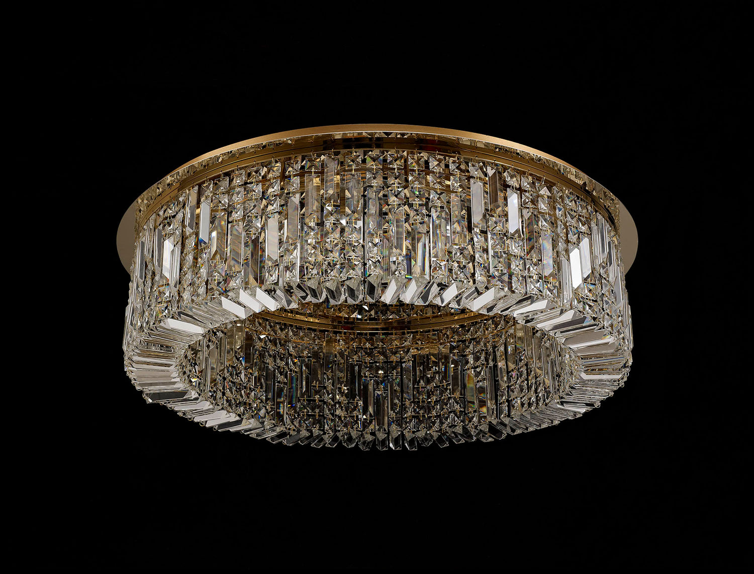 Zosma is a prestigious collection of alluring crystal fixtures that enraptures its audience with the exceptional dazzling quality of each piece of clear crystal. From 1m rectangular pendants to 45cm round flush lights each impressive design is available in either a polished chrome or gold finish. The striking strands of crystal hang either side of the E14 lampholders and are joined beneath them with additional rectangular crystal pieces, to conceal the lamps used and heighten the sparkle demonstrated when illuminated.