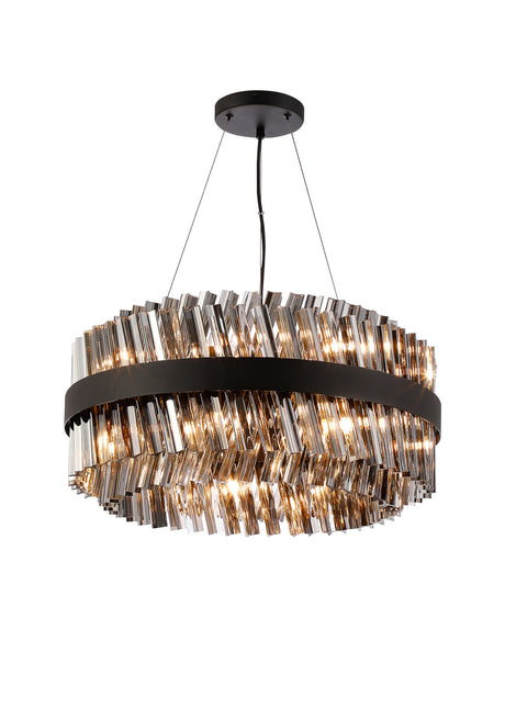 ADH8798 Adhil Round 12 Light Ceiling Pendant Matt Black/Smoked