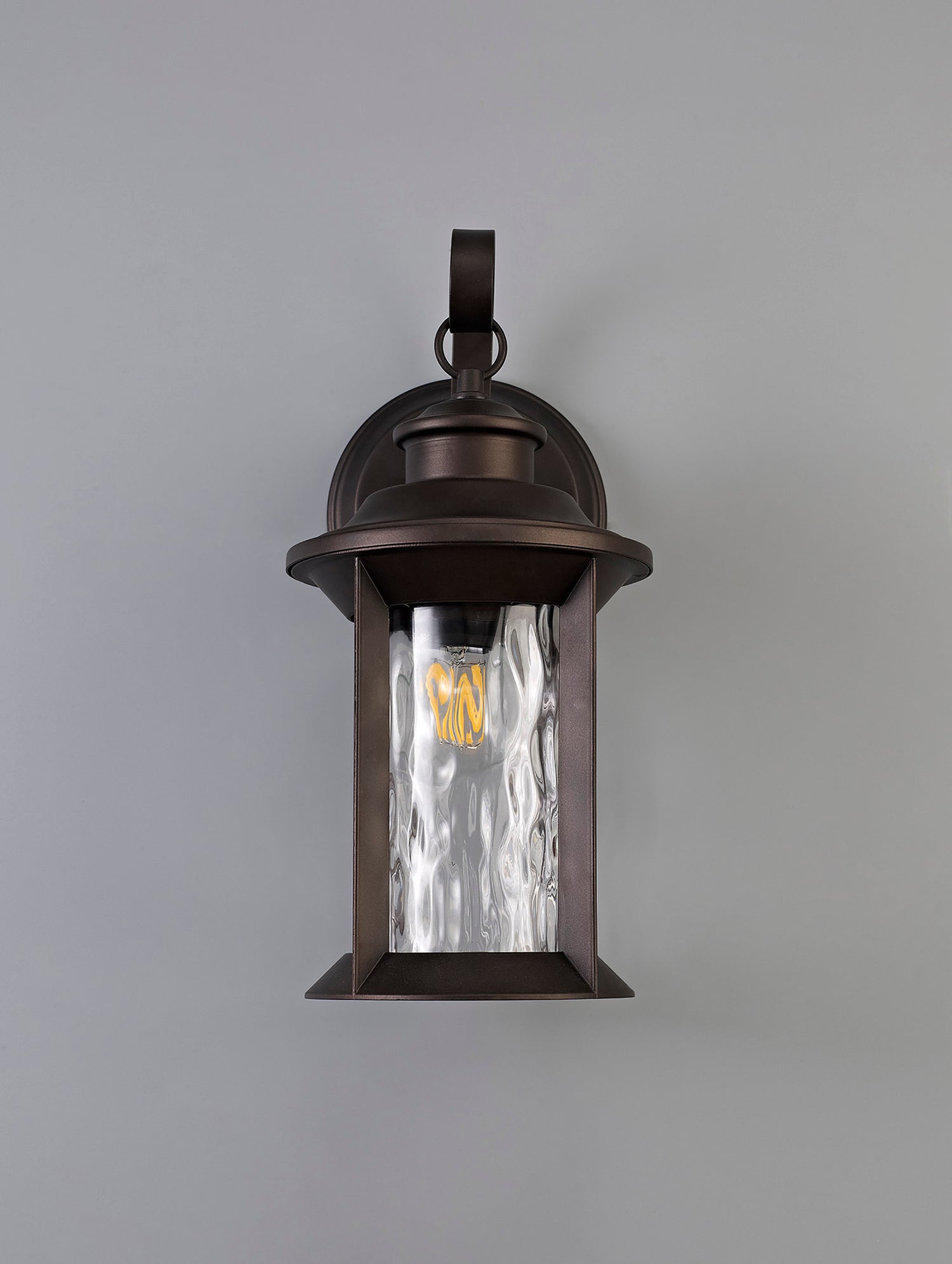 Providing an IP54 rated outdoor collection the Elon fixtures are coated in an antique bronze colour finish to complement the vintage lantern style of the hanging wall lamp, post and pedestal lamps. To expand the applications for this family, there is also a compatible flush ceiling light within the collection. Each fixture holds a single E27 lampholder which is encircled with compellingly designed glass panes moulded with large dimples forming subtle reflections.