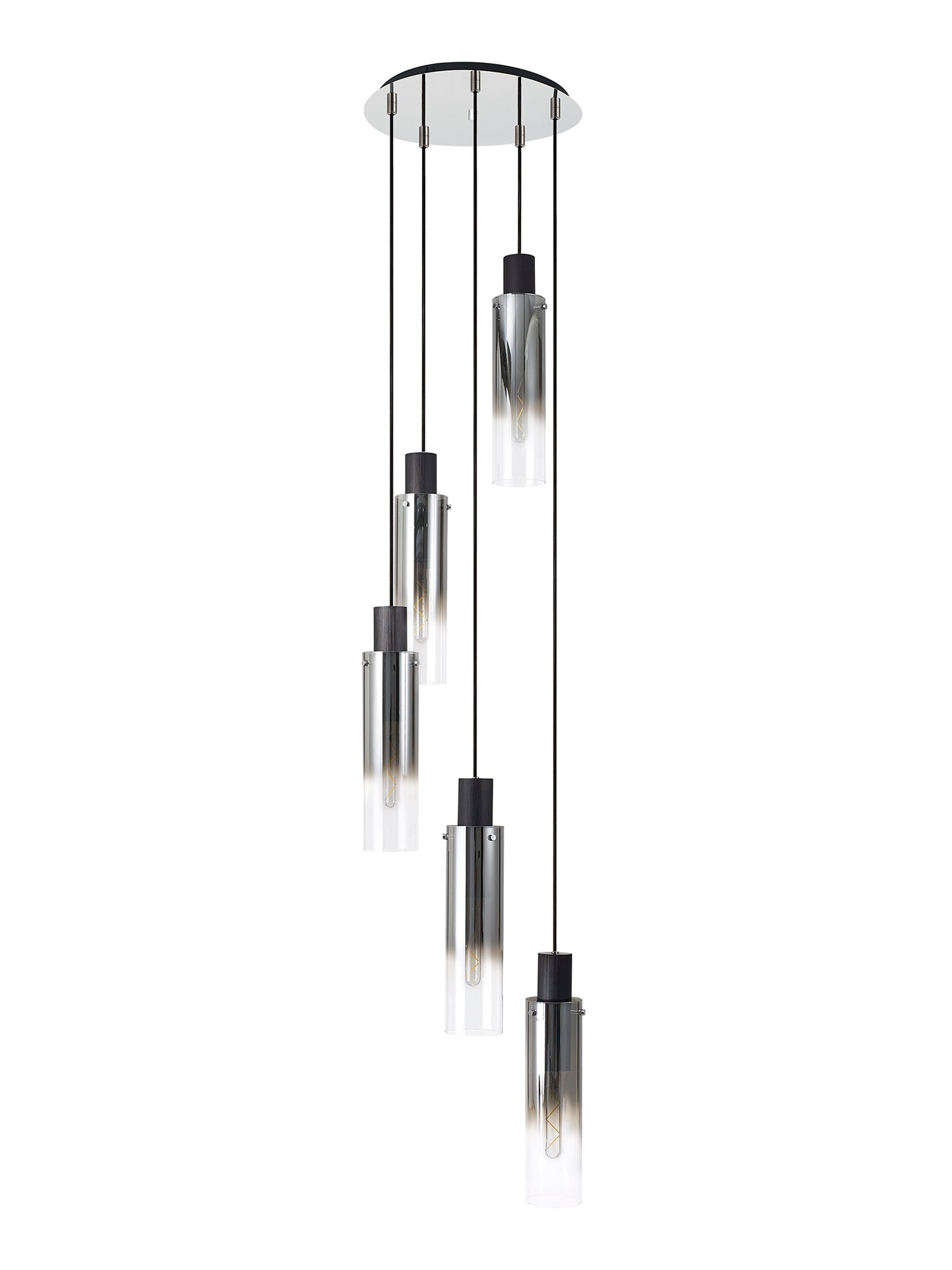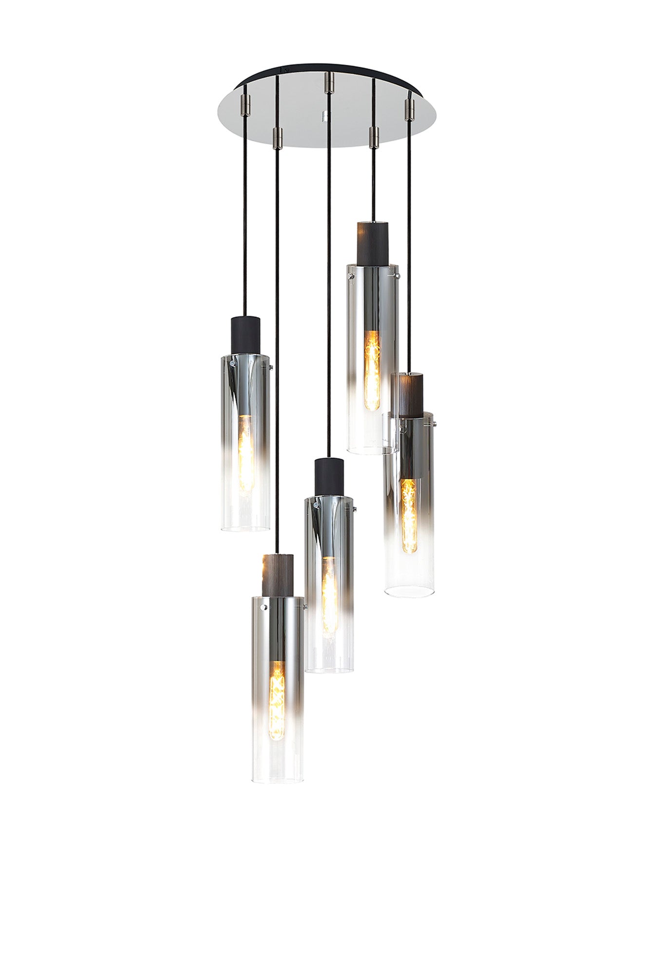 BUN0948 Bunda Slim Round 5 Light Pendant in a Black/Chrome/Smoke Fade Finish