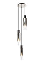 This exclusive 3 light pendant comes from the Hillano Bunda range, the item code for this product is BUN9848. The 3 light pendant comes with a chrome ceiling plate, black lamp holders complete with smoke fade glass shades.