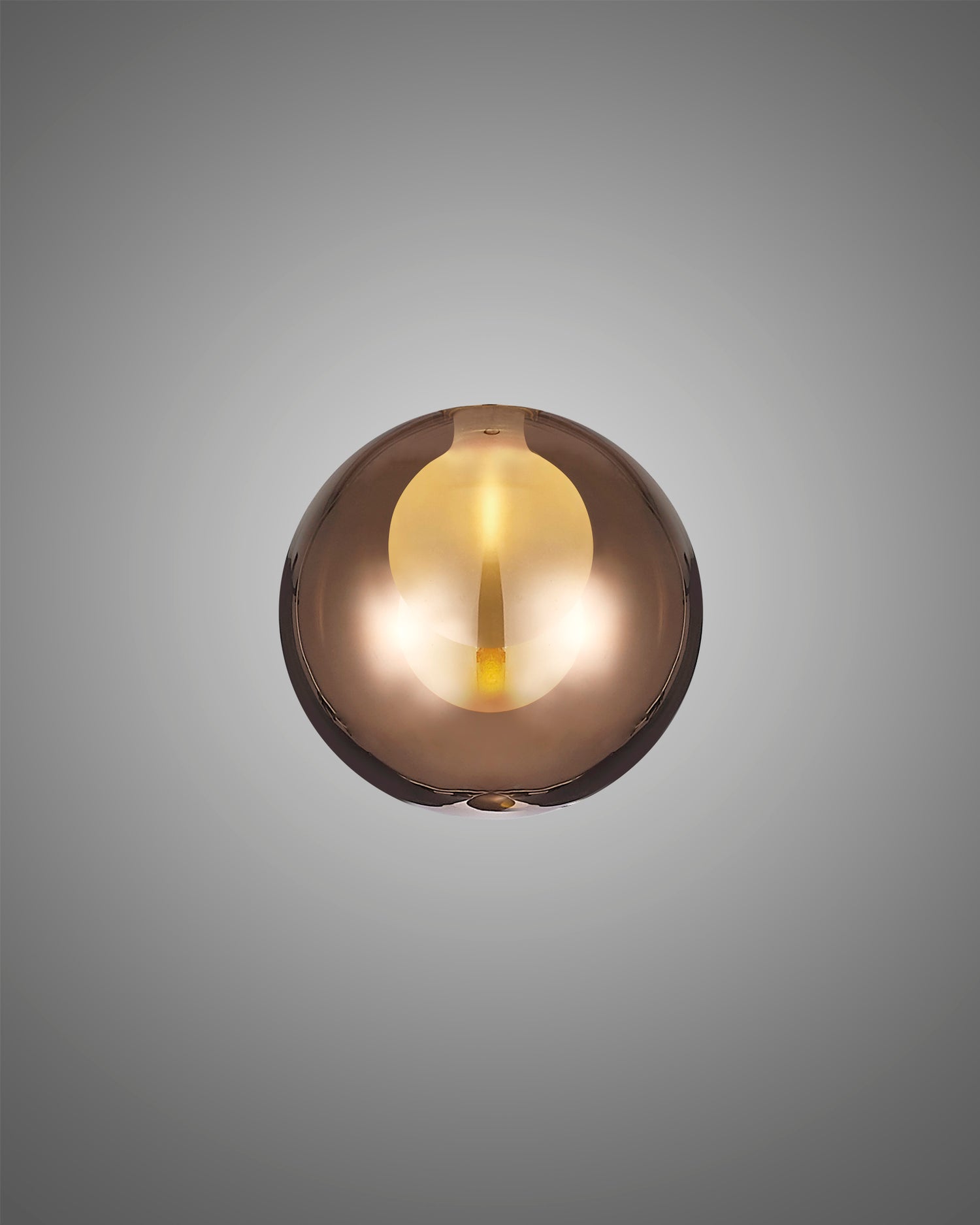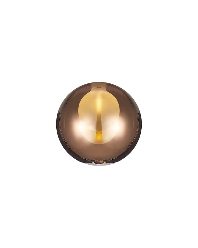 The stunning Ella ELL0467 1 light ceiling pendant comes in a modern polished chrome finish complete with a copper glass ball shade.