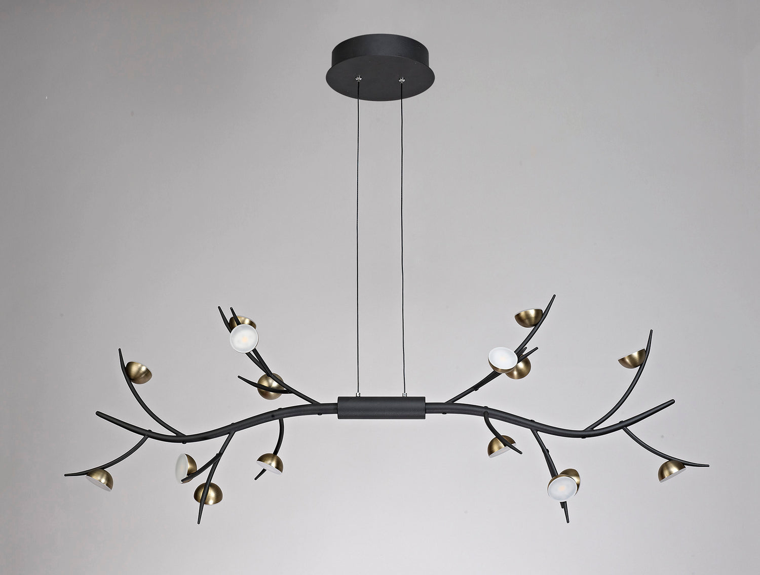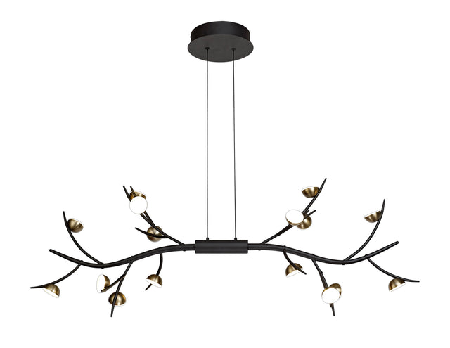 KUM9717 Kuma 16 Light Linear Pendant 48W LED in a Black/Antique Brass/Frosted Finish