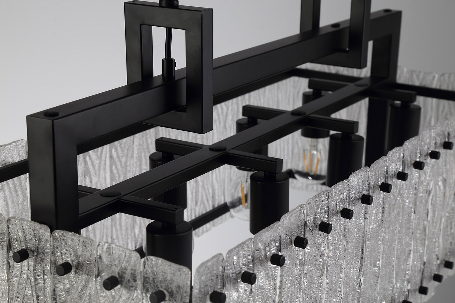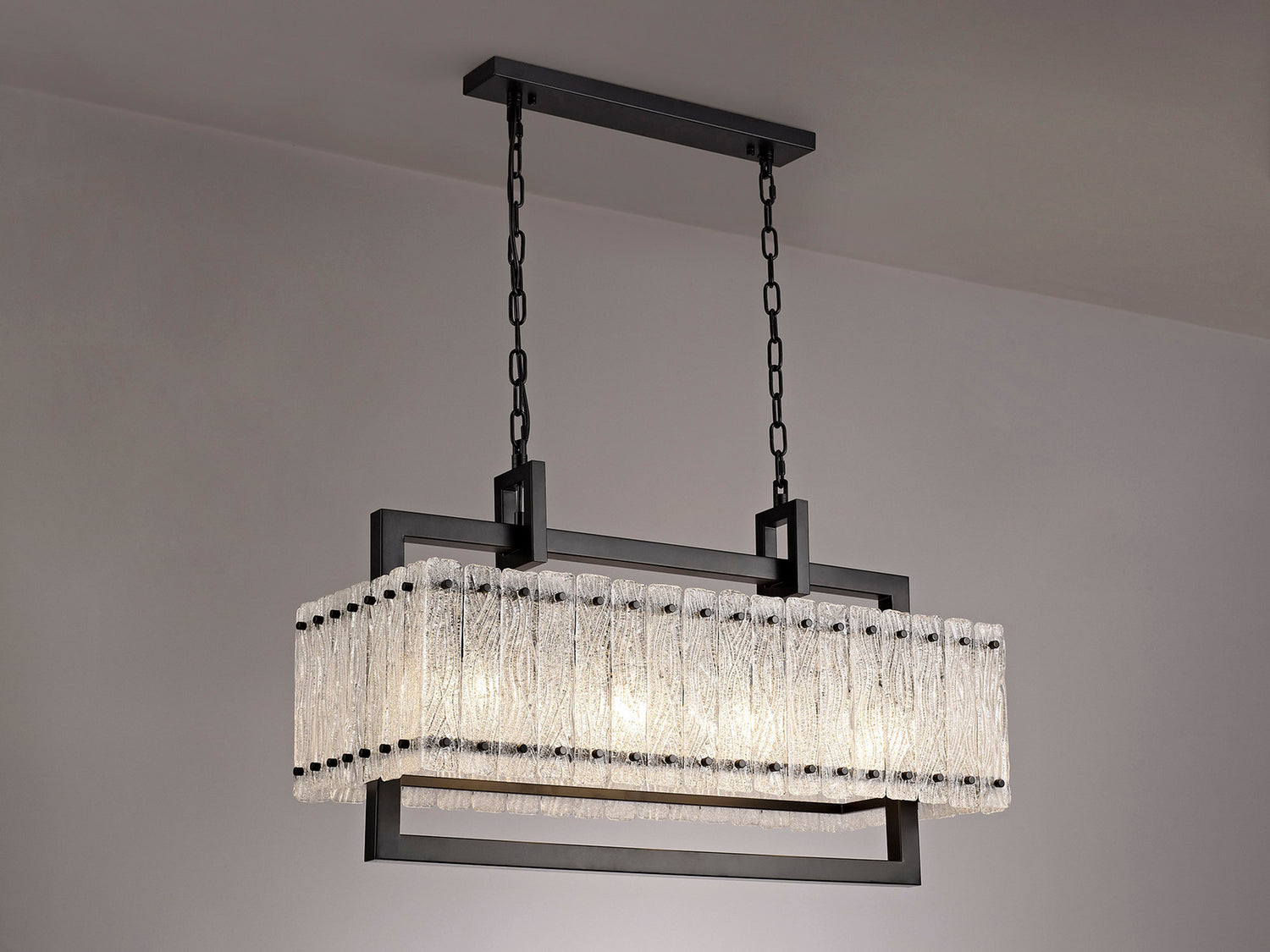 SAR5867 Sarin Medium Linear Pendant 8 Light (15.5kg) in a Matt Black/Crystal Sand Artistic Finish