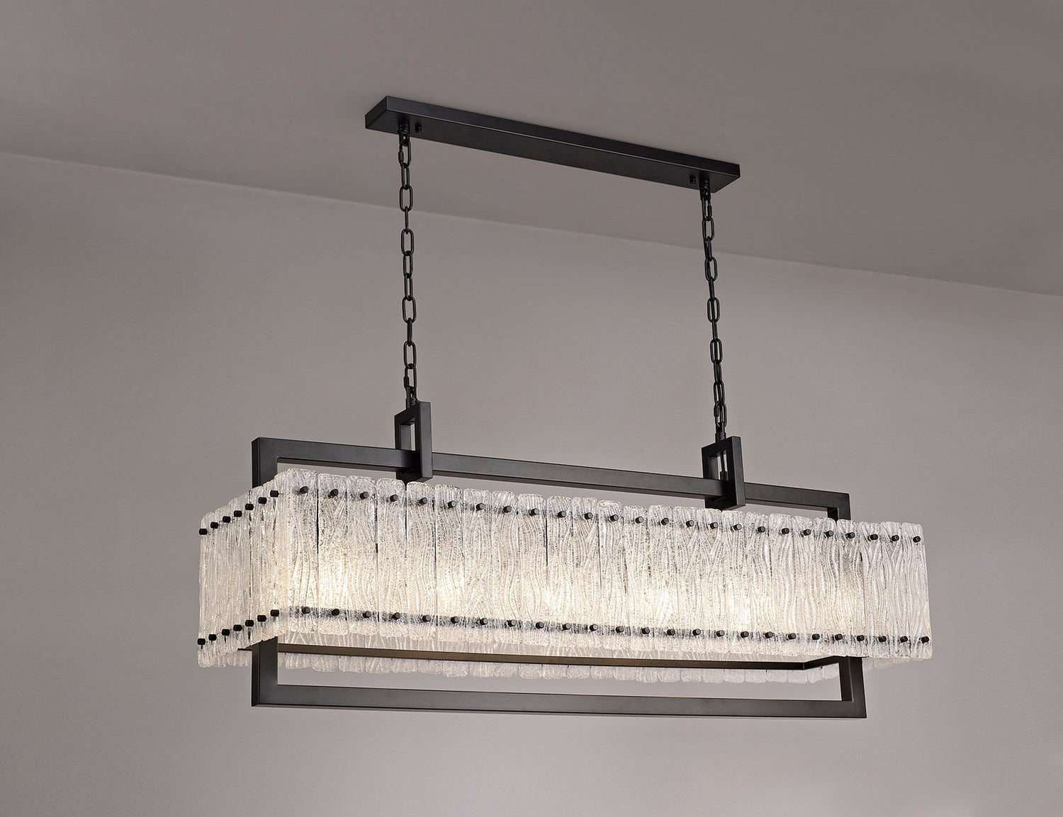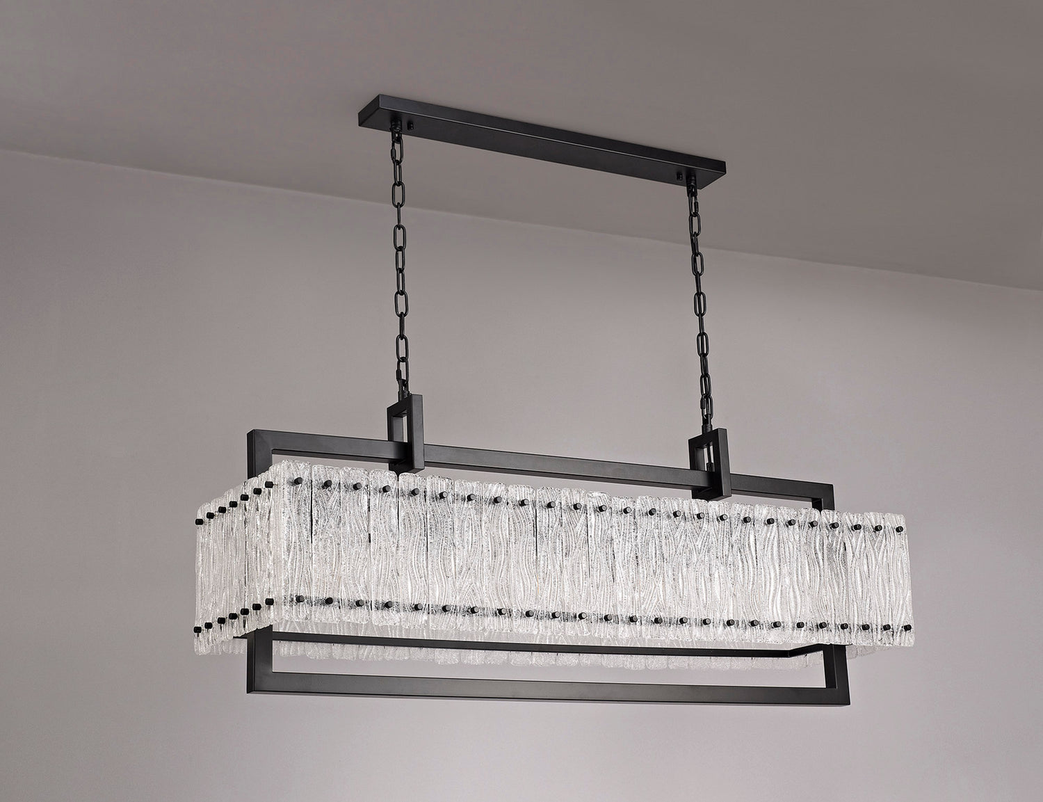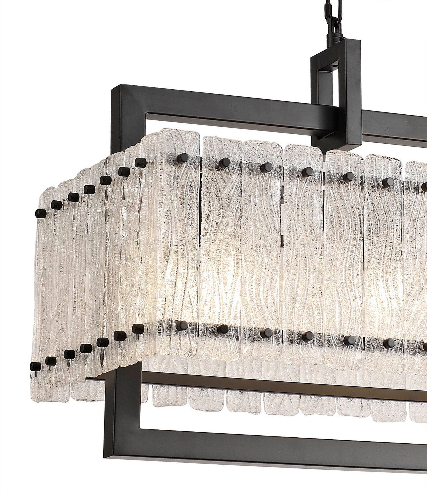 SAR6867 Sarin Large Linear Pendant 12 Light (20.2kg) in a Matt Black/Crystal Sand Artistic Finish
