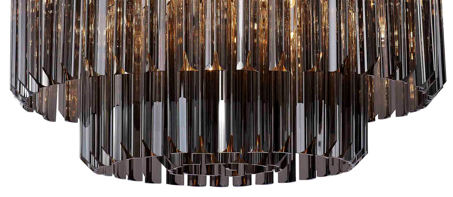 The popularity of the Adhil collections initial release has been so overwhelming that the collection has now been extensively expanded to meet a wider range of specification needs. The long angular shape of the glass which are in a tiered form, can now be found on larger more dramatic designs including a five tier and rectangular pendant to name only a few. Adhil has a traditional regal effect composed with modern materials to create a range suitable for either a modern or more traditional room setting. The unique pyramid forms protruding from the frame provide an intriguing overall shape across this comprehensive collection. To view the full range type 'Adhil' into the search box.