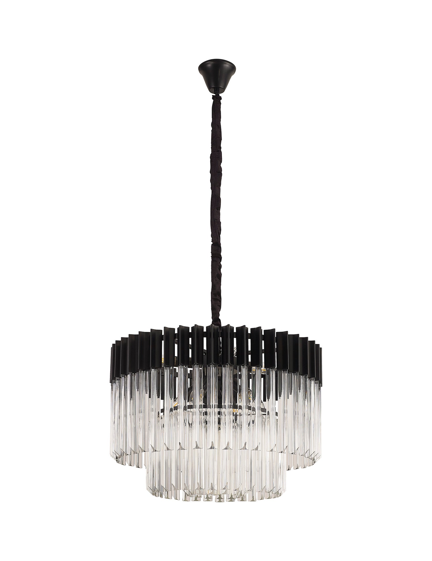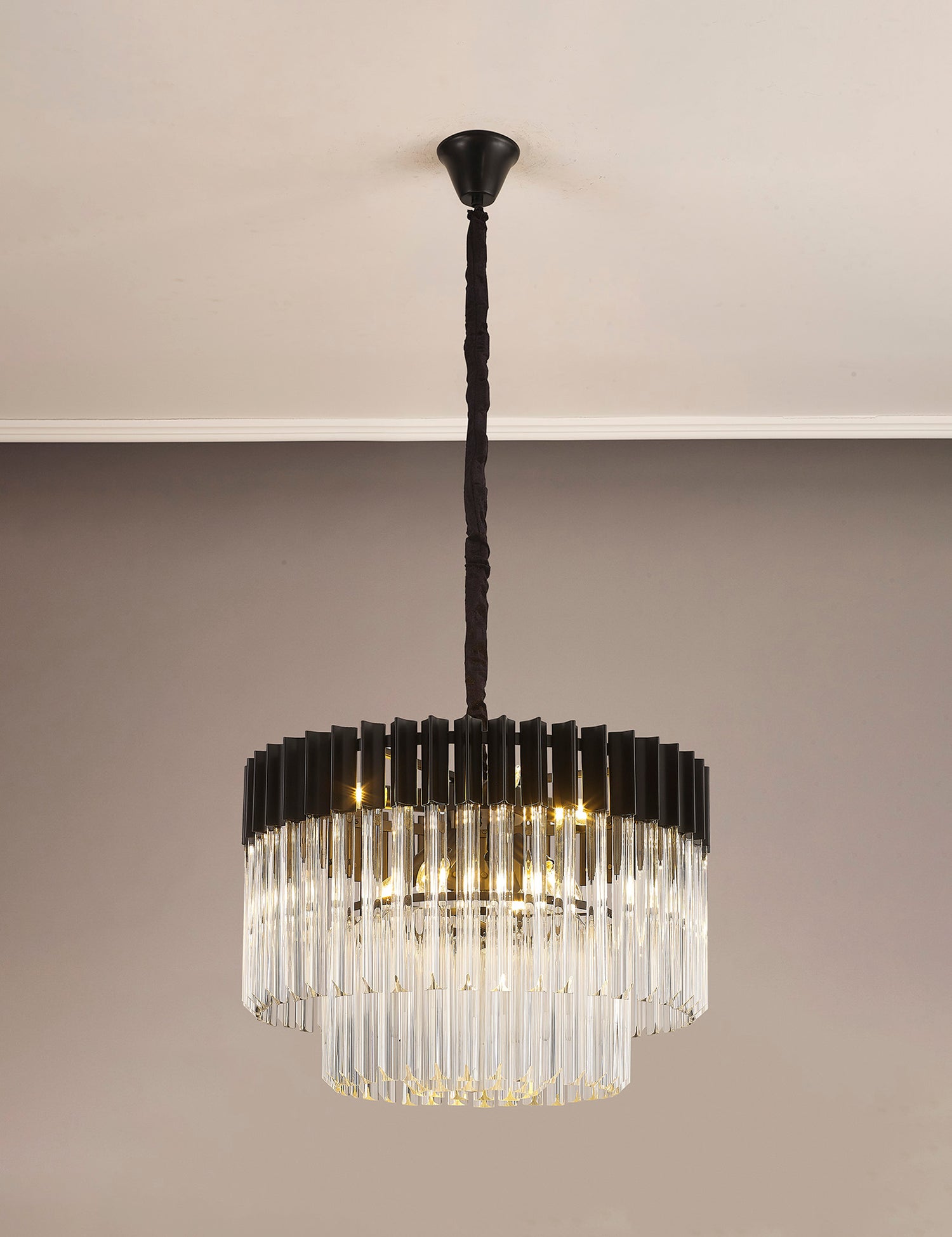 ADH1798 Adhil Round 8 Light Ceiling Pendant Matt Black/Clear