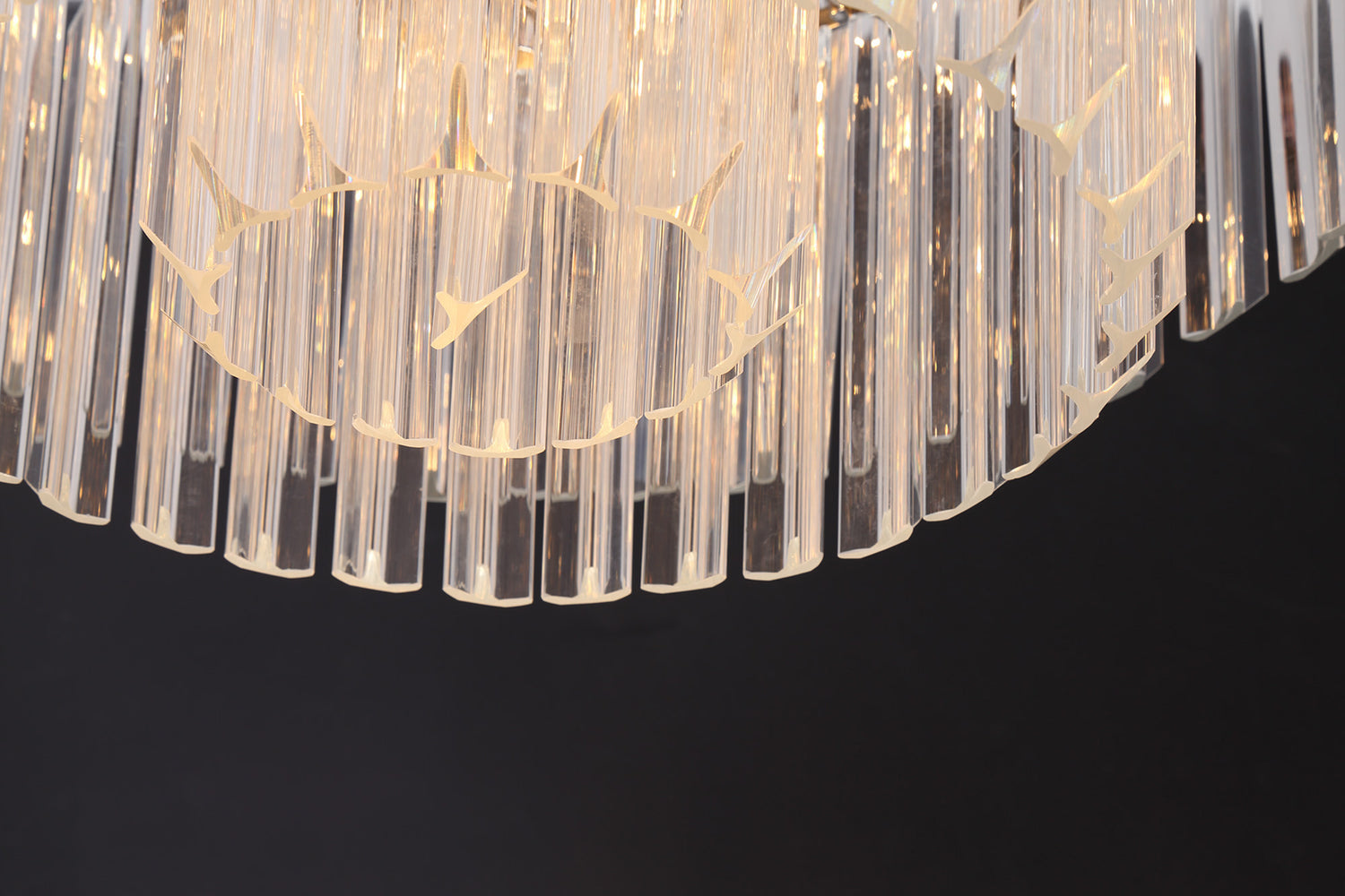 The popularity of the Adhil collections initial release has been so overwhelming that the collection has now been extensively expanded to meet a wider range of specification needs. The long angular shape of the glass which are in a tiered form, can now be found on larger more dramatic designs including a five tier and rectangular pendant to name only a few. Adhil has a traditional regal effect composed with modern materials to create a range suitable for either a modern or more traditional room setting. The unique pyramid forms protruding from the frame provide an intriguing overall shape across this comprehensive collection. To view the full range type 'Adhil' into the search box.