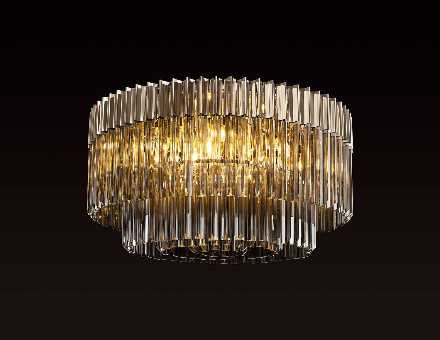 The popularity of the Adhil collections initial release has been so overwhelming that the collection has now been extensively expanded to meet a wider range of specification needs. The long angular shape of the glass which are in a tiered form, can now be found on larger more dramatic designs including a five tier and rectangular pendant to name only a few. Adhil has a traditional regal effect composed with modern materials to create a range suitable for either a modern or more traditional room setting. The unique pyramid forms protruding from the frame provide an intriguing overall shape across this comprehensive collection. To view the full range type 'Adhil' into the search box.