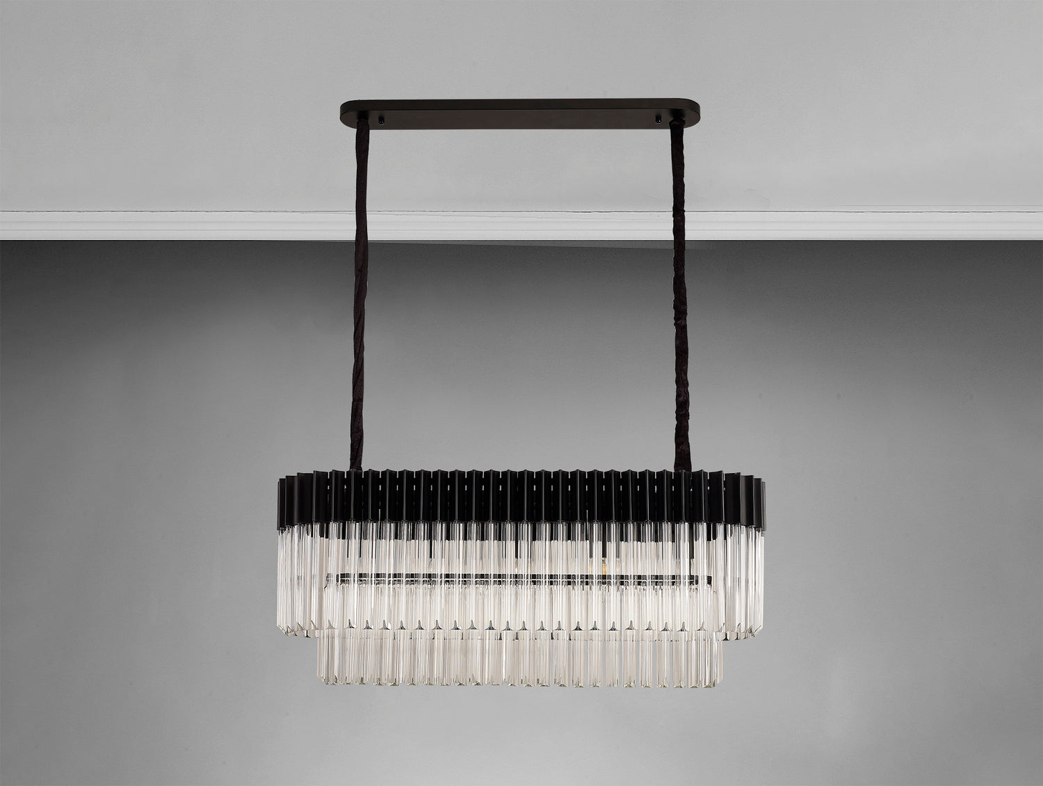 This elegant 5 light bar pendant comes from the Luxury Hillano Adhil range, the item code for this product is ADH3598. The modern 5 light pendant comes in a matt black finish complete with elegant clear sculpted glass.