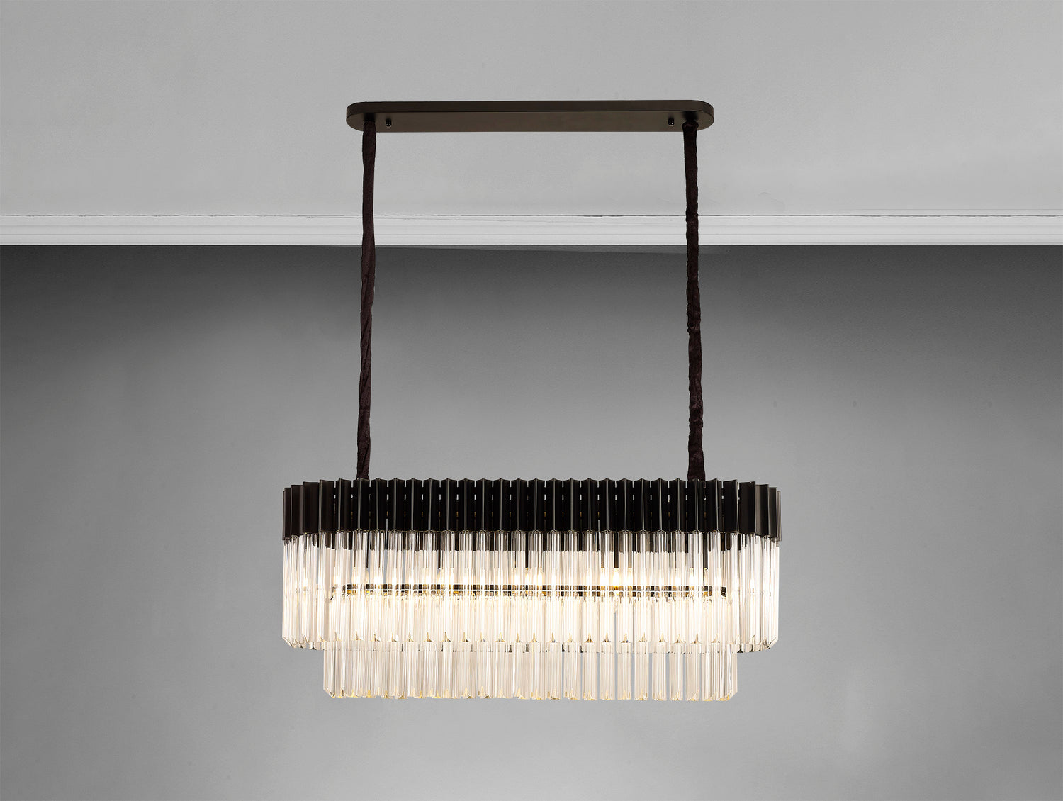 The popularity of the Adhil collections initial release has been so overwhelming that the collection has now been extensively expanded to meet a wider range of specification needs. The long angular shape of the glass which are in a tiered form, can now be found on larger more dramatic designs including a five tier and rectangular pendant to name only a few. Adhil has a traditional regal effect composed with modern materials to create a range suitable for either a modern or more traditional room setting. The unique pyramid forms protruding from the frame provide an intriguing overall shape across this comprehensive collection. To view the full range type 'Adhil' into the search box.