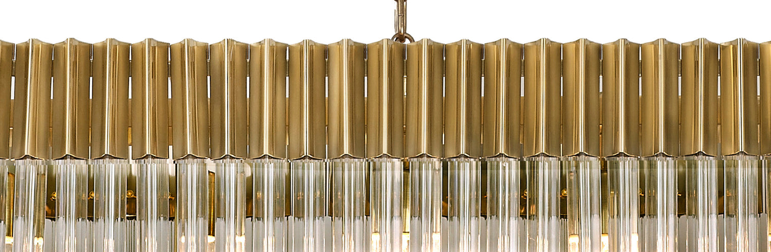 This divine 7 light bar pendant comes from the Hillano Adhil range, the item code for this product is ADH4328. The 7 light pendant comes in a brass finish complete with elegant modern clear sculpted glass.