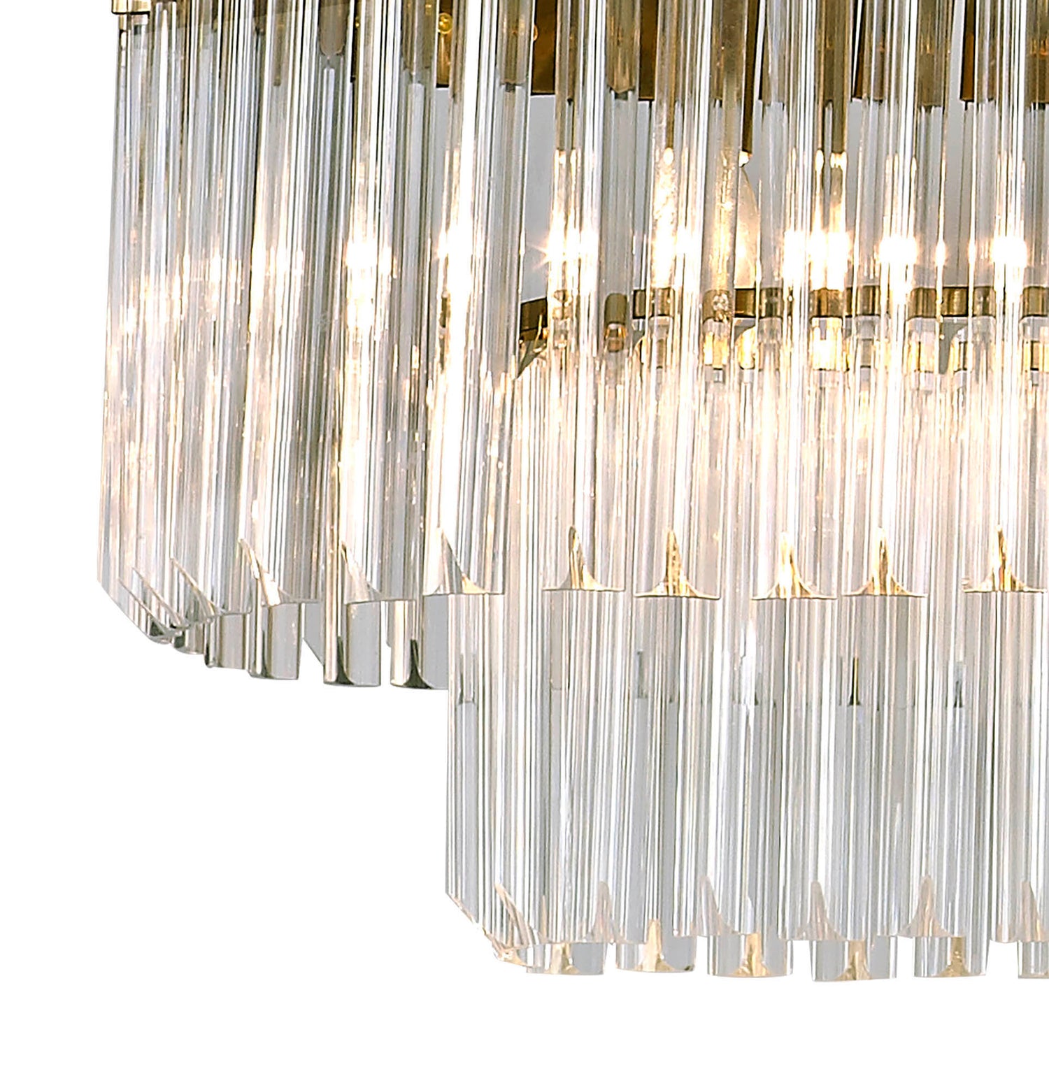 The popularity of the Adhil collections initial release has been so overwhelming that the collection has now been extensively expanded to meet a wider range of specification needs. The long angular shape of the glass which are in a tiered form, can now be found on larger more dramatic designs including a five tier and rectangular pendant to name only a few. Adhil has a traditional regal effect composed with modern materials to create a range suitable for either a modern or more traditional room setting. The unique pyramid forms protruding from the frame provide an intriguing overall shape across this comprehensive collection. To view the full range type 'Adhil' into the search box.