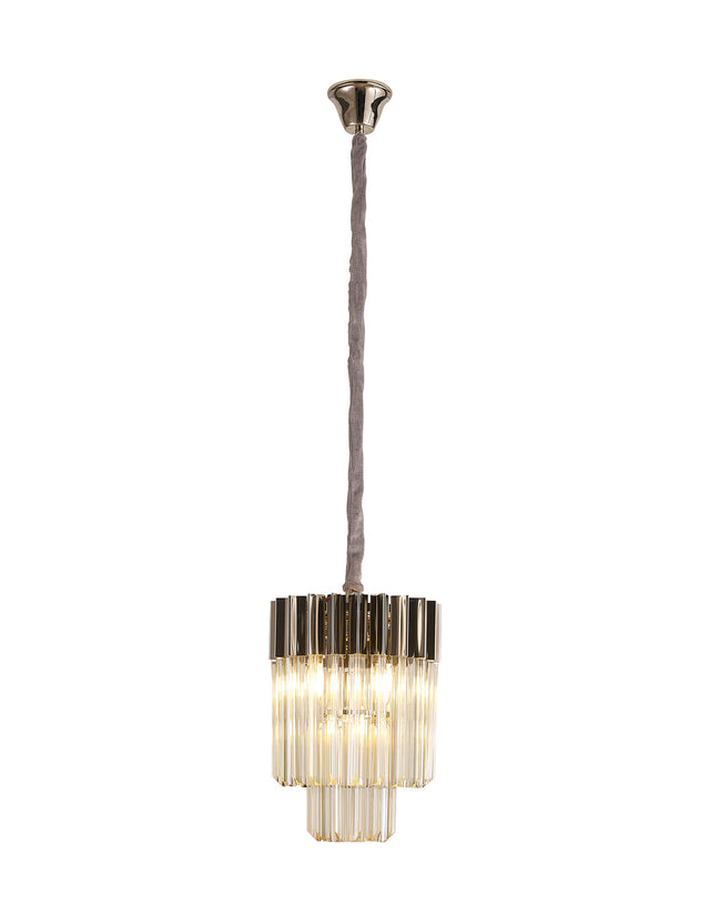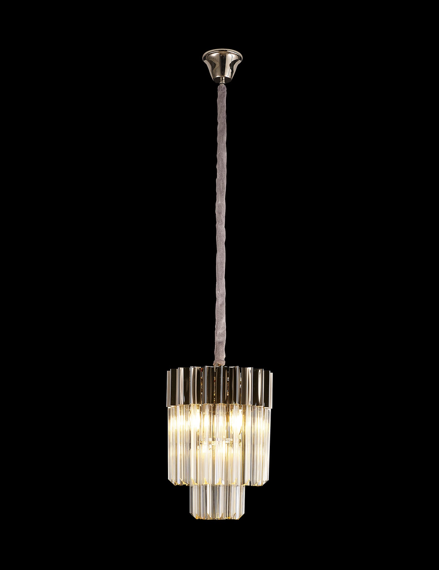 The popularity of the Adhil collections initial release has been so overwhelming that the collection has now been extensively expanded to meet a wider range of specification needs. The long angular shape of the glass which are in a tiered form, can now be found on larger more dramatic designs including a five tier and rectangular pendant to name only a few. Adhil has a traditional regal effect composed with modern materials to create a range suitable for either a modern or more traditional room setting. The unique pyramid forms protruding from the frame provide an intriguing overall shape across this comprehensive collection. To view the full range type 'Adhil' into the search box.