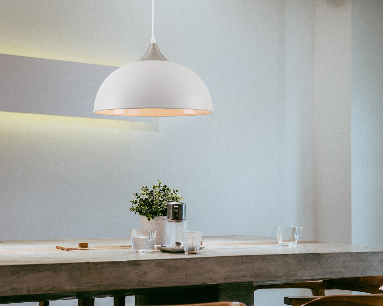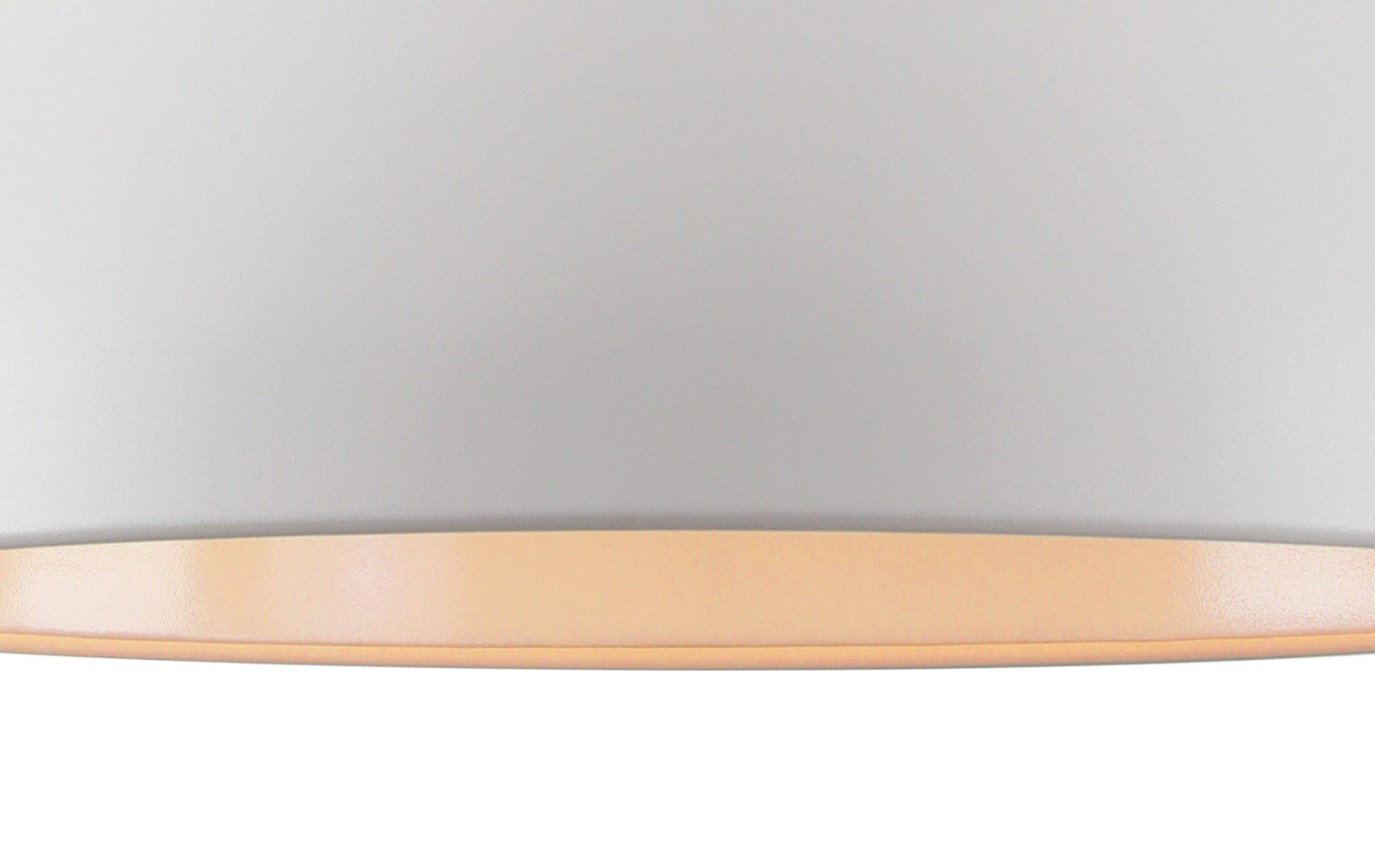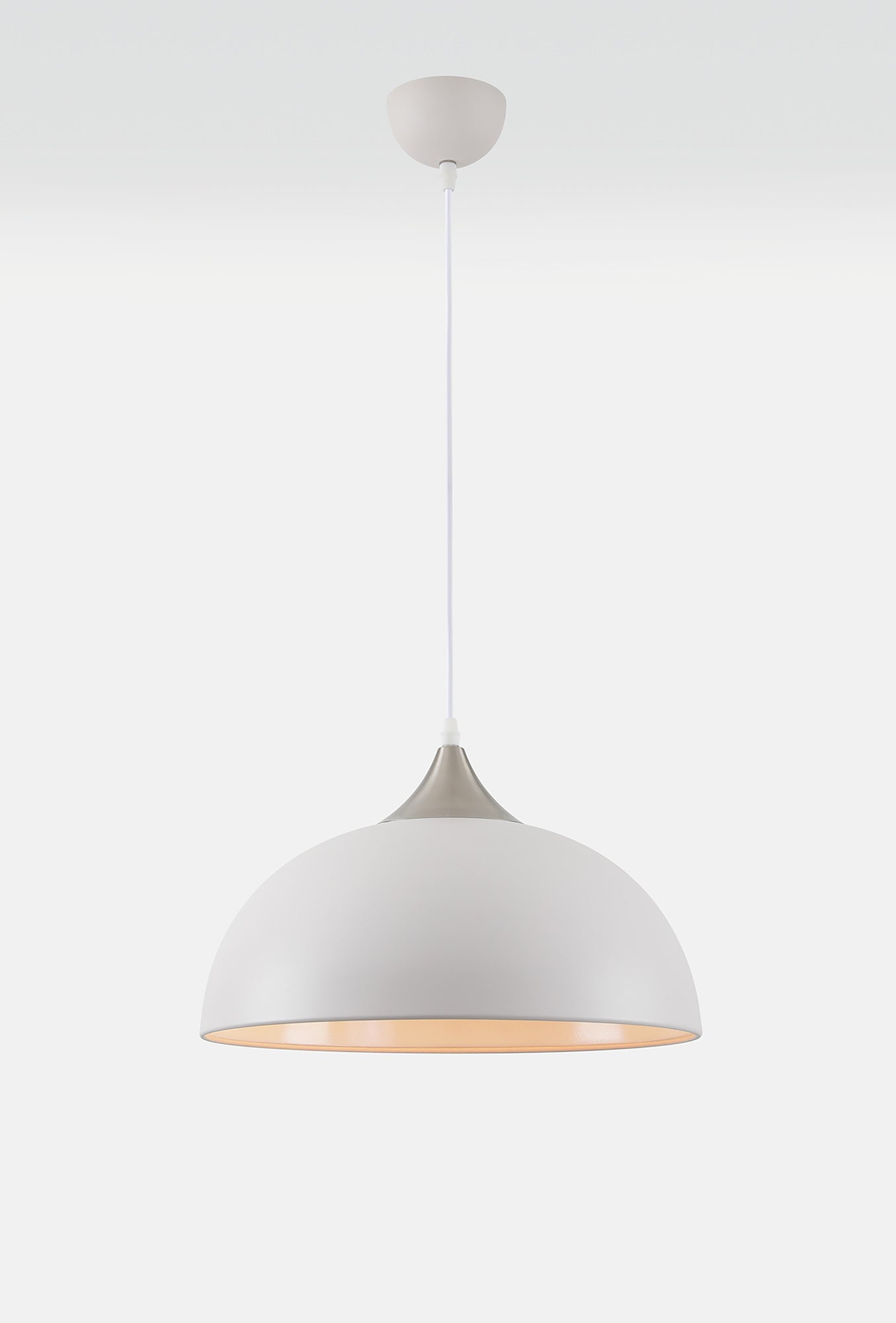 A uniform bowl shape forming the Aljana collection, provides ample shade for the downward directionality of light from the E27 lampholder which it houses. Their dome ceiling cups reflect the form of the 38cm and 50cm metal shades shape allowing a cohesive design. The sand effect of the neutral colour finishes available partner well with the small satin nickel components ensuring the light blends with the décor of its chosen setting.