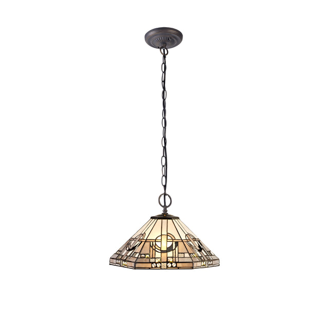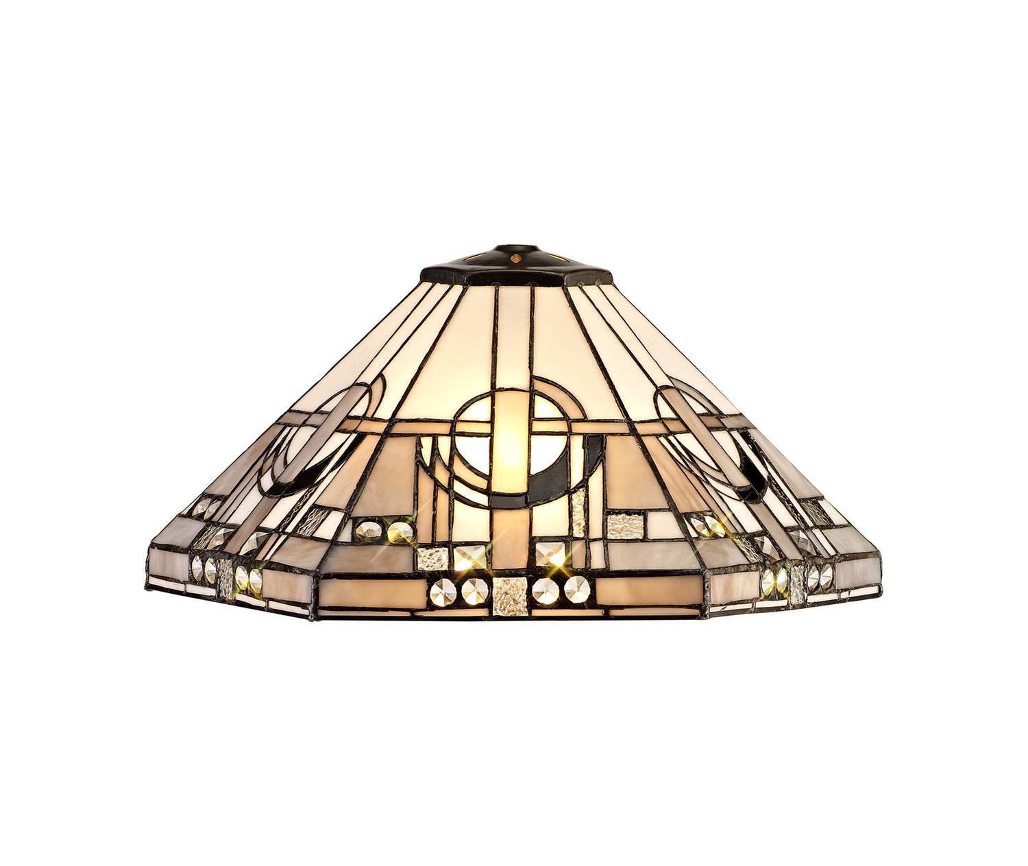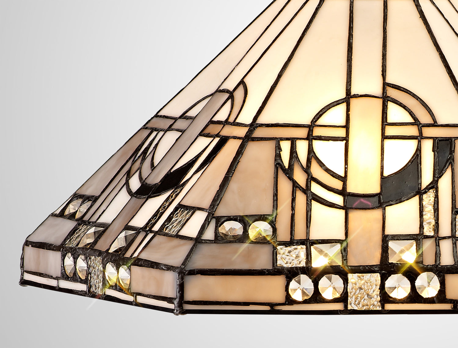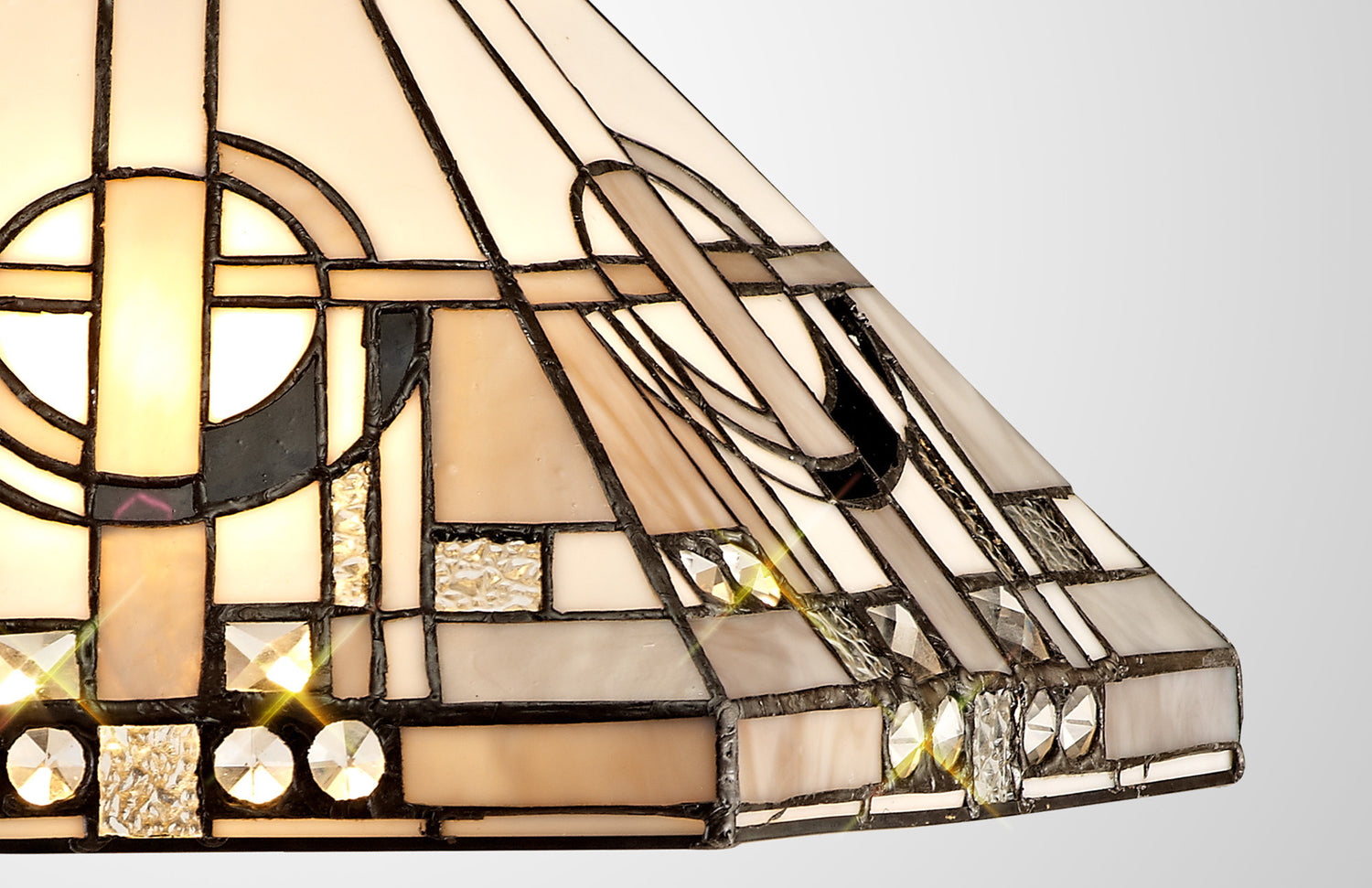 Avior takes its name from the inspiration of its design. The vintage effect of the Tiffany glass is interpreted to reflect Aztecan artistic creations with the shapes and positioning of the glass pieces being furthered by the shape of the shade itself. Giving this range a subtle modern edge the shades are embedded with clear crystal pieces in keeping with the monochrome palette of coloured glass. The Avior range includes two non-electric shades and a 1 light wall lamp.