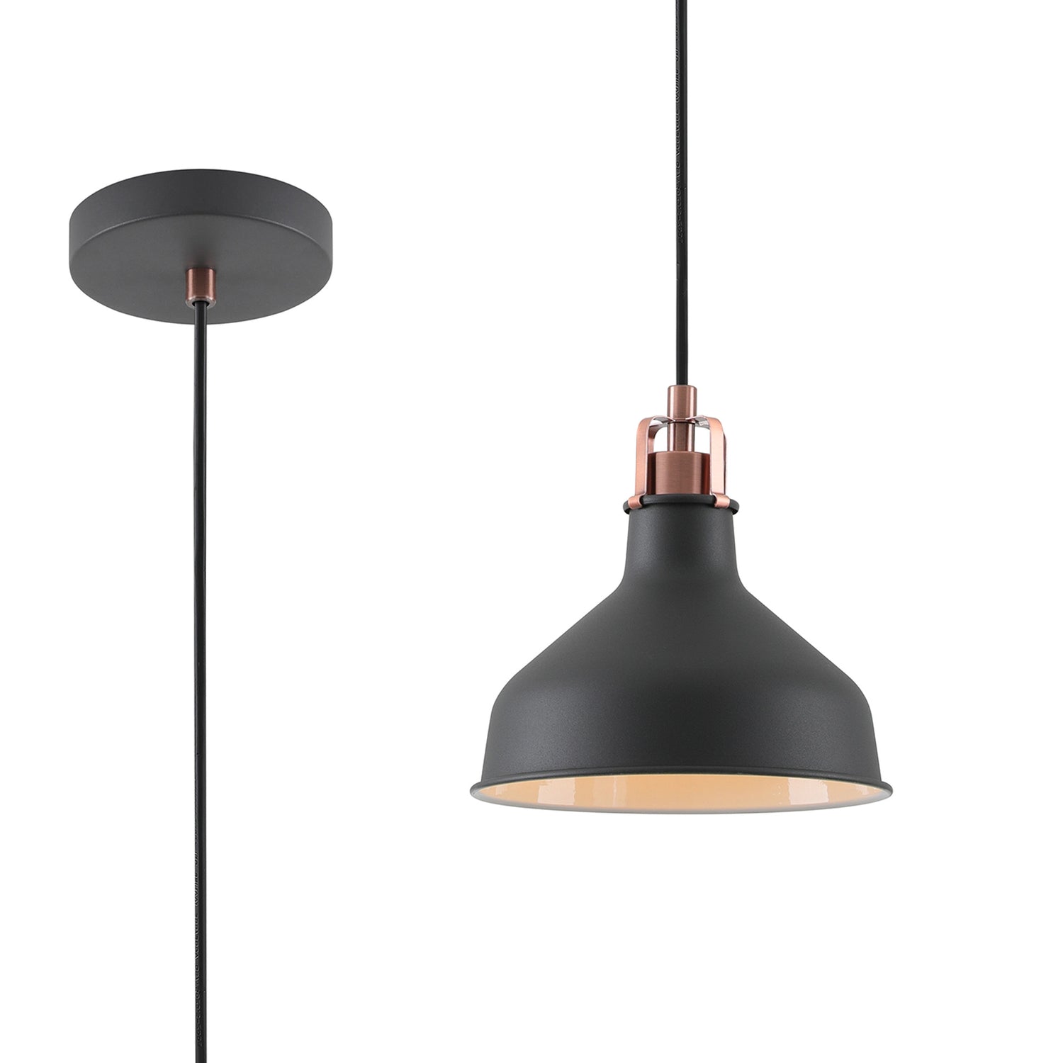 BEL3107 Belel Small Pendant 1 Light in a Graphite/Copper/White Finish