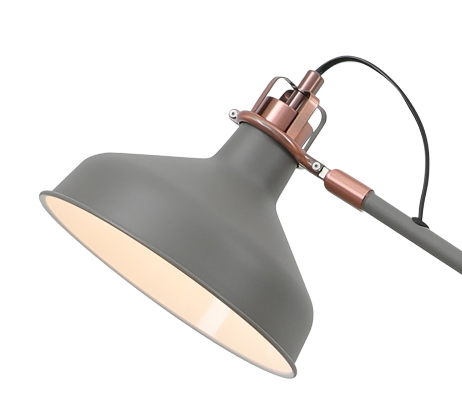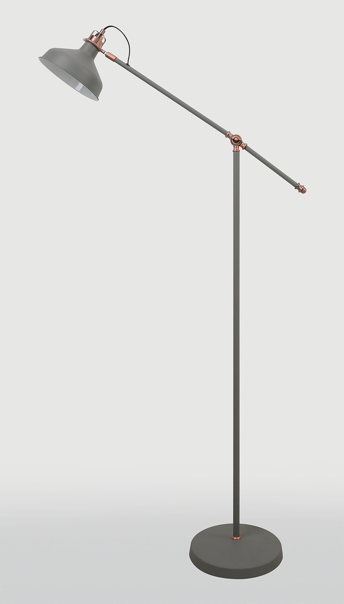 BEL8007 Belel 154cm Adjustable Floor Lamp 1 Light in a Sand Grey/Copper/White Finish