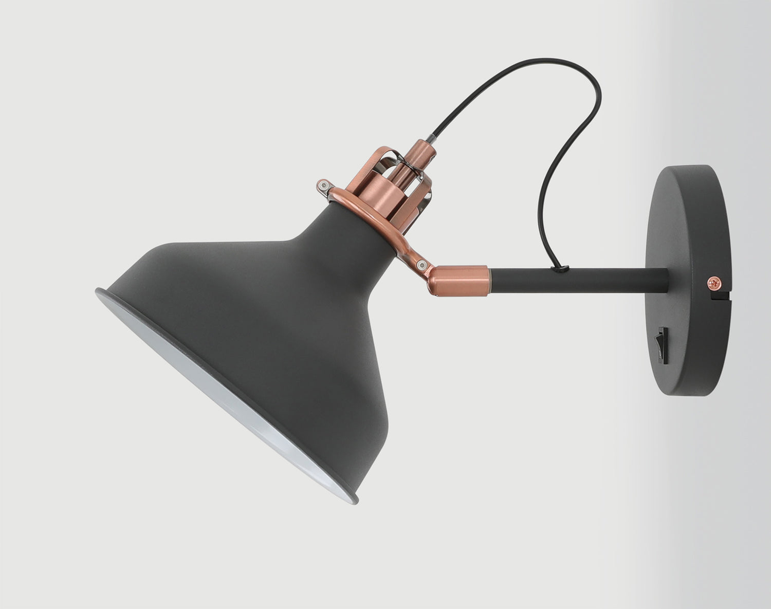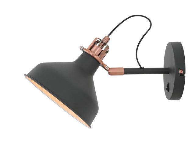 BEL9177 Belel Adjustable Wall Lamp 1 Light in a Graphite/Copper/White Finish