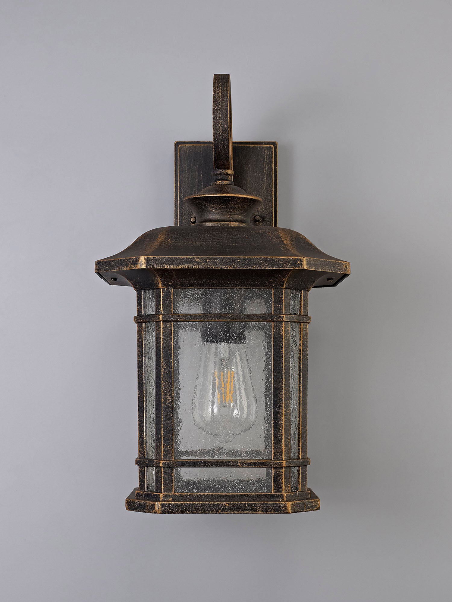 BIB0857 Bibha Large Wall Lamp 1 Light IP54 Indoor/Outdoor Use in a Brushed Black Gold/Seeded Clear Finish
