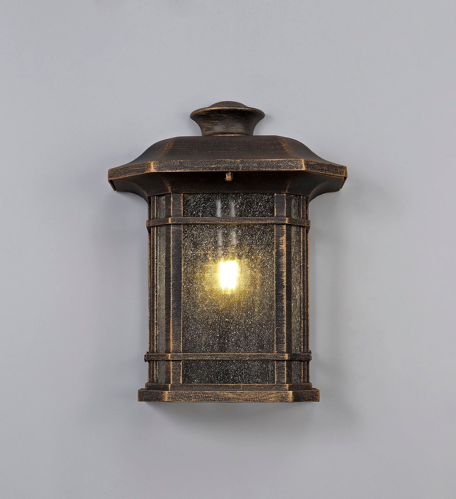 BIB1857 Bibha Half Wall Lamp 1 Light IP54 Indoor/Outdoor Use in a Brushed Black Gold/Seeded Clear Finish