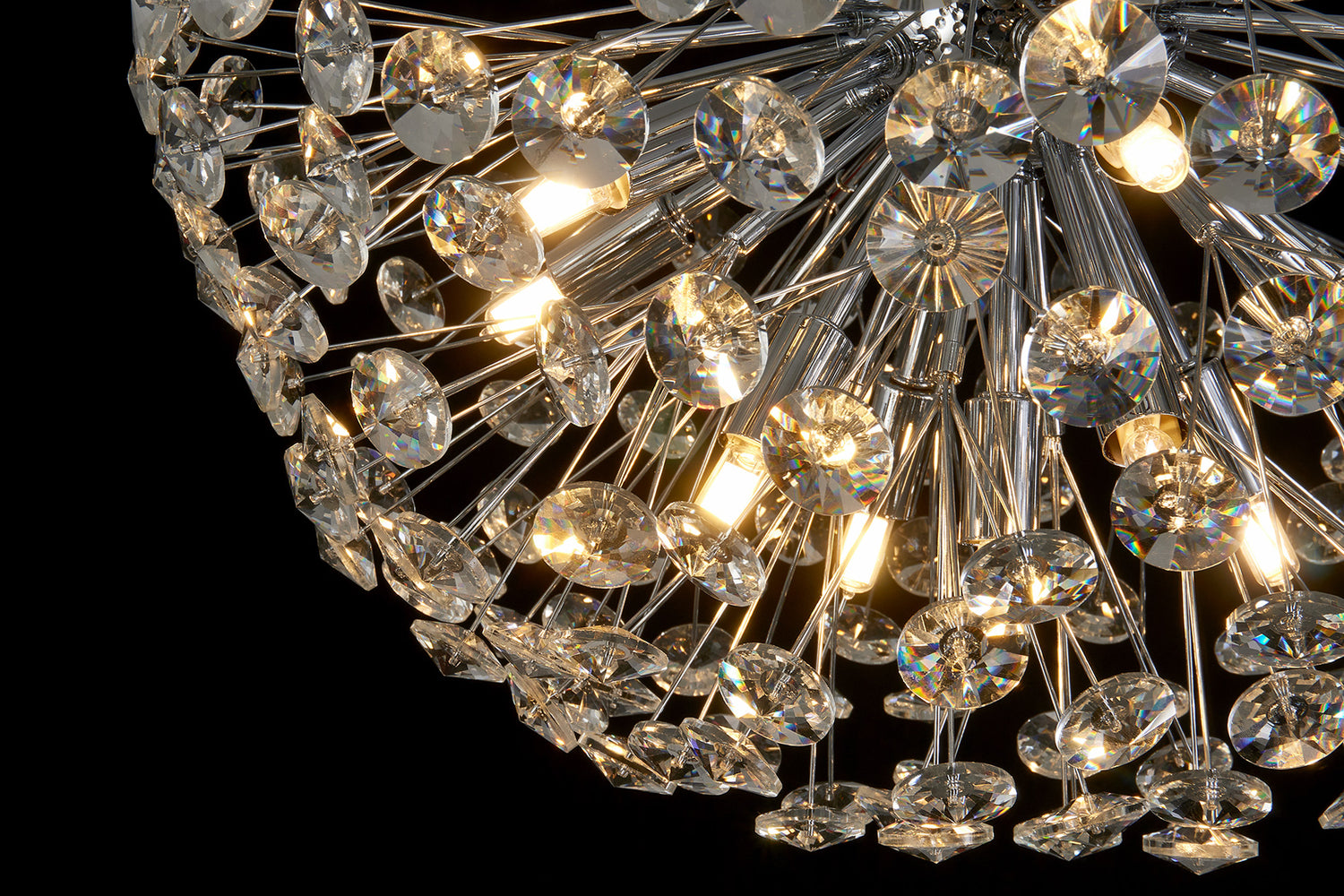 The divine Bosina 11 light ceiling light comes in a polished chrome finish complete with elegant crystal detail.