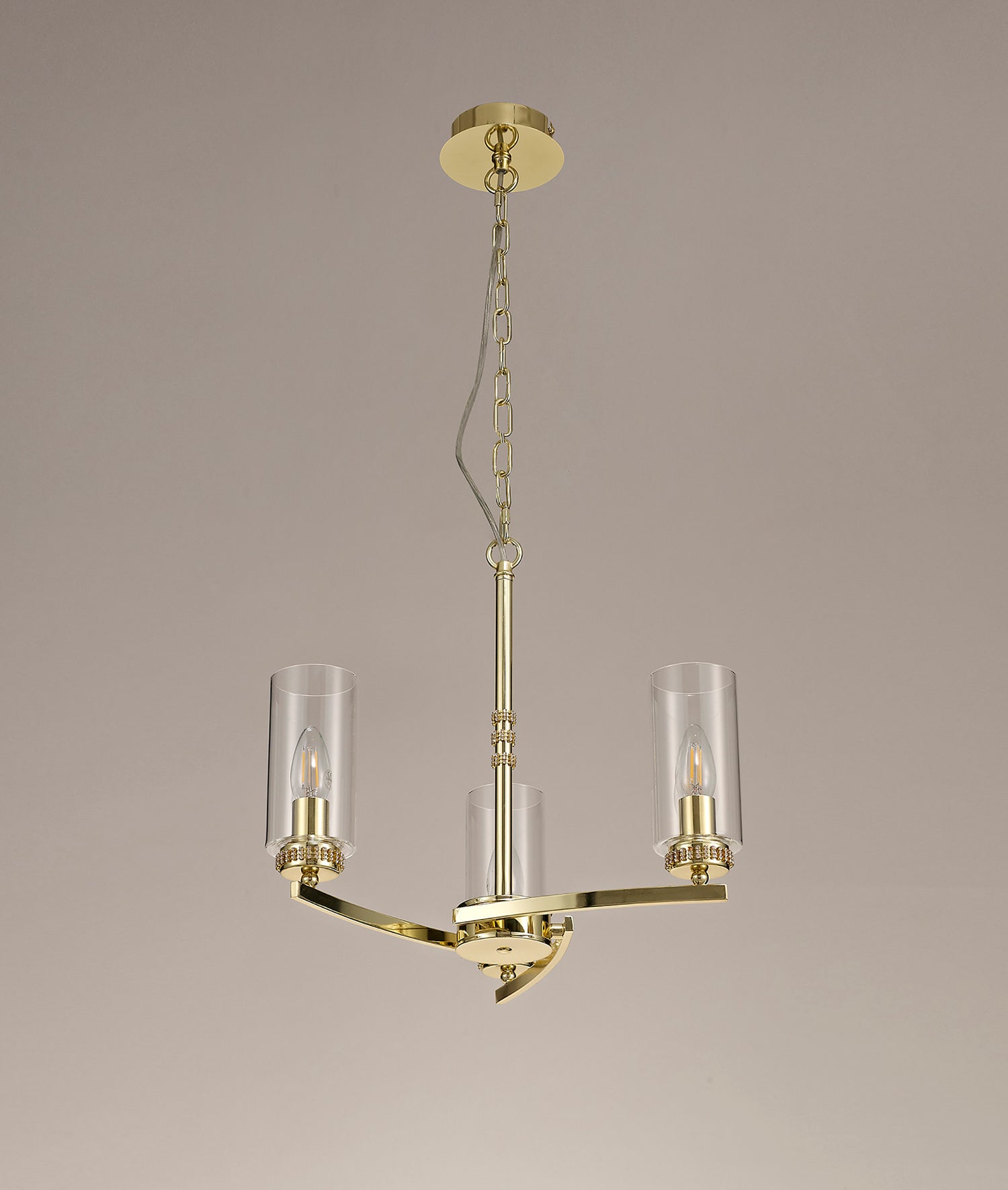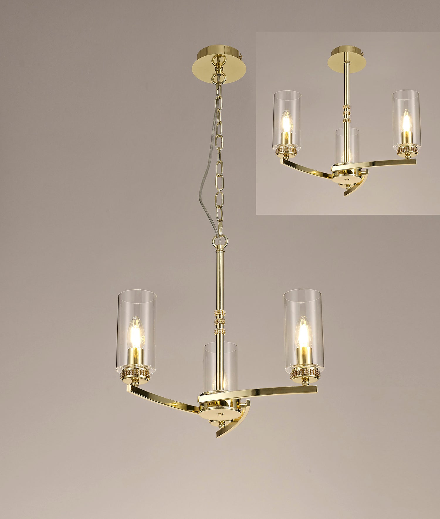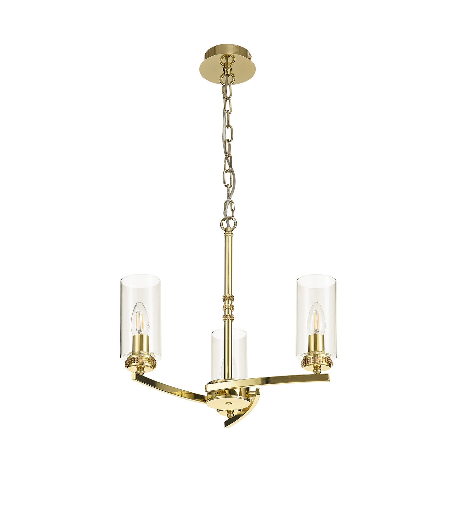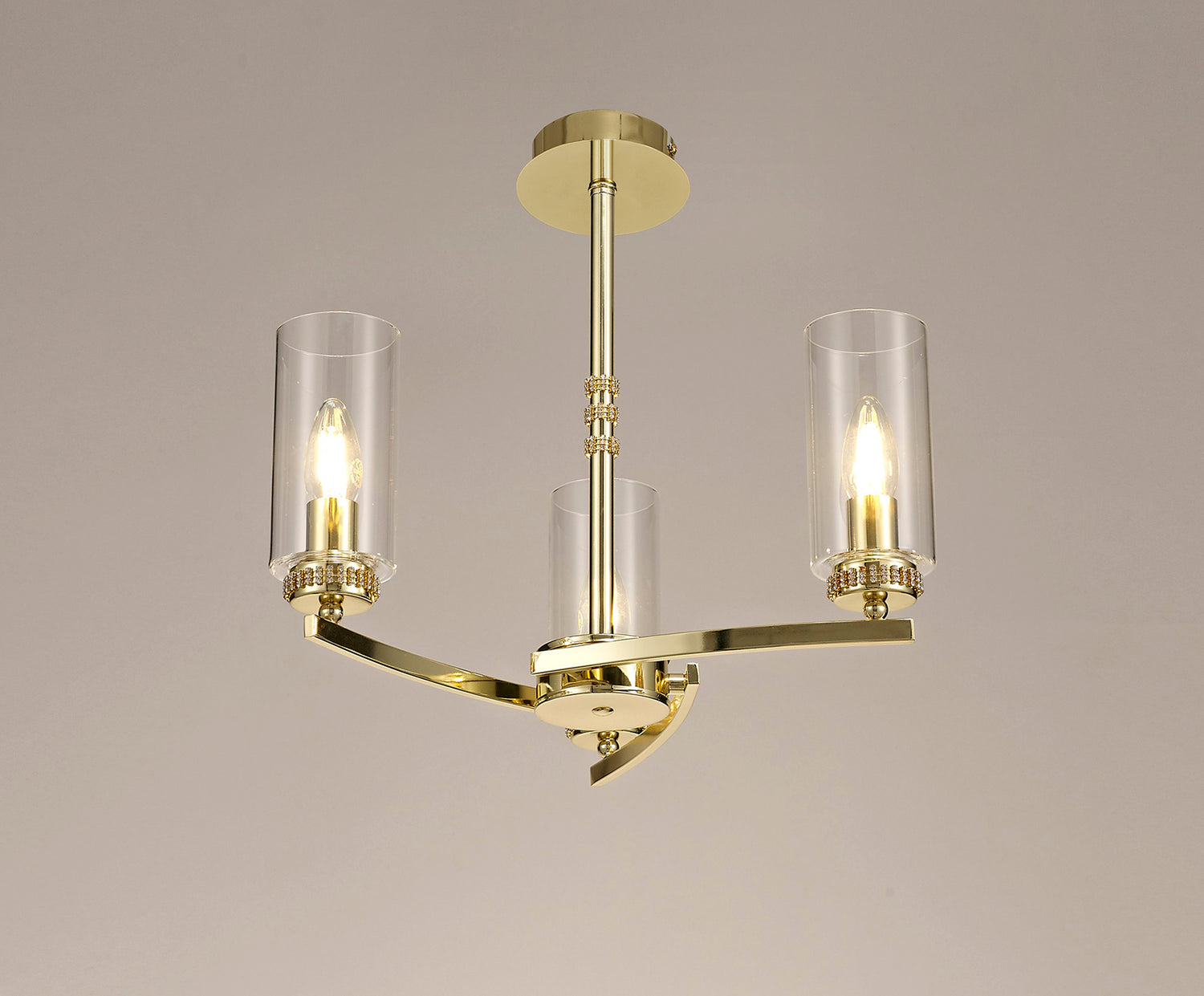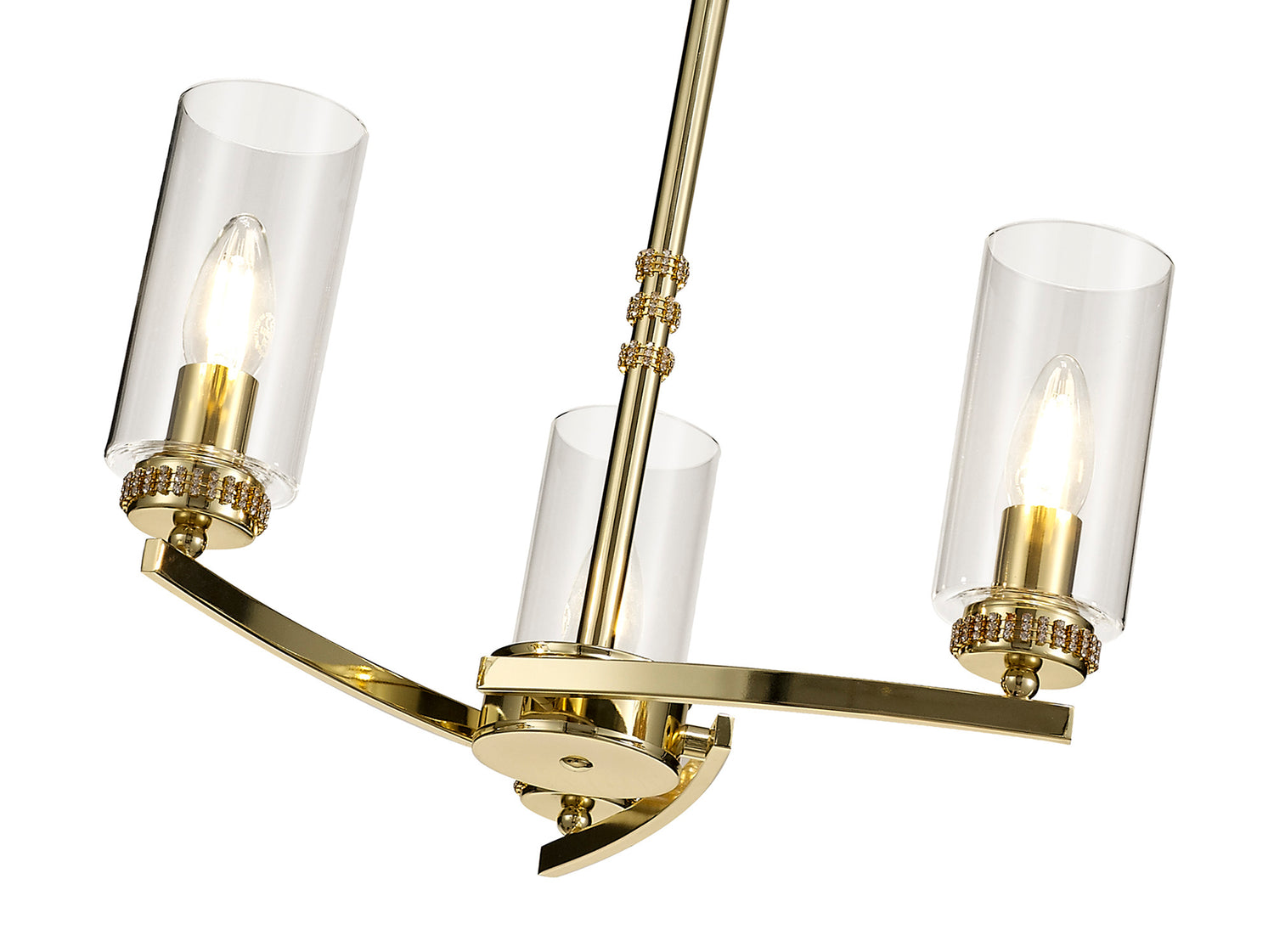 DAB0237 Dabih Pendant/Semi Ceiling 3 Light in a Polished Gold/Clear Finish and Clear Crystal