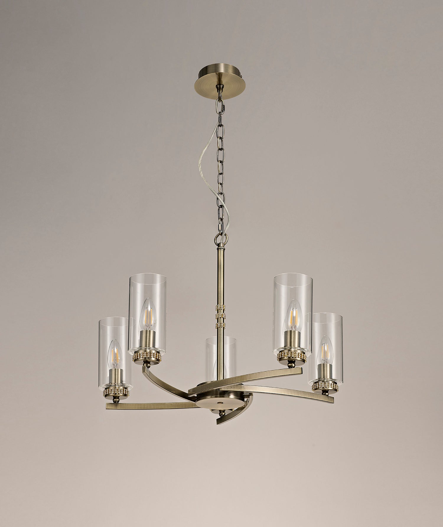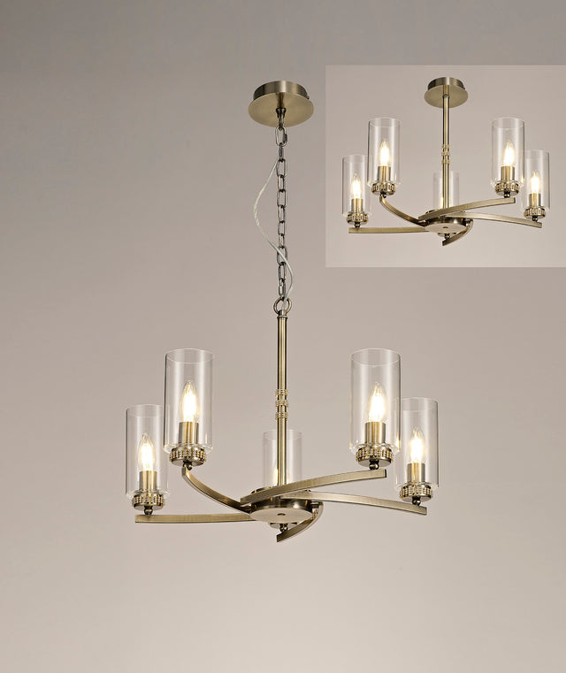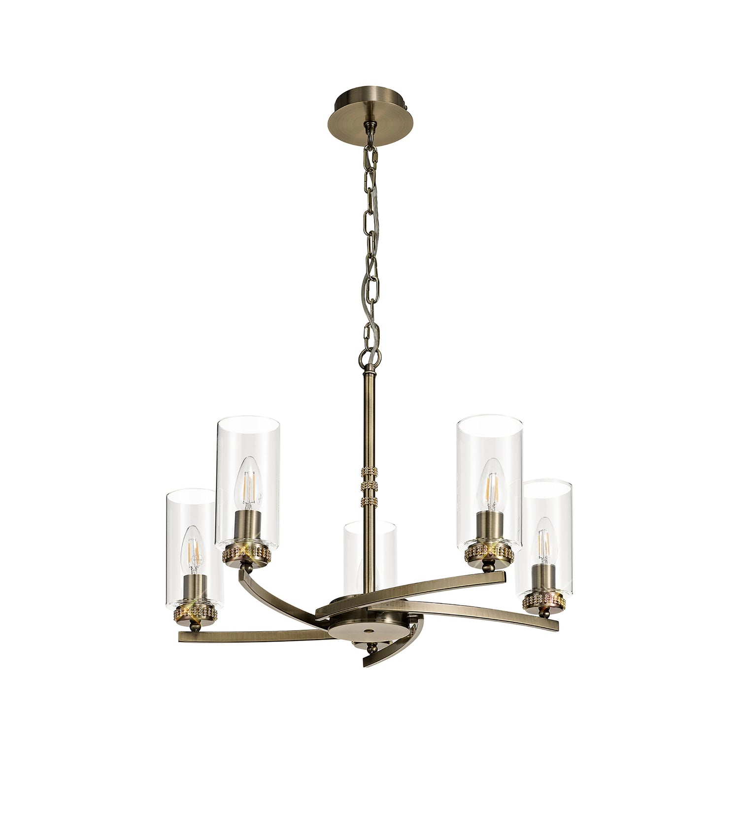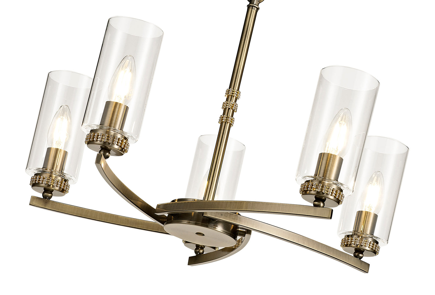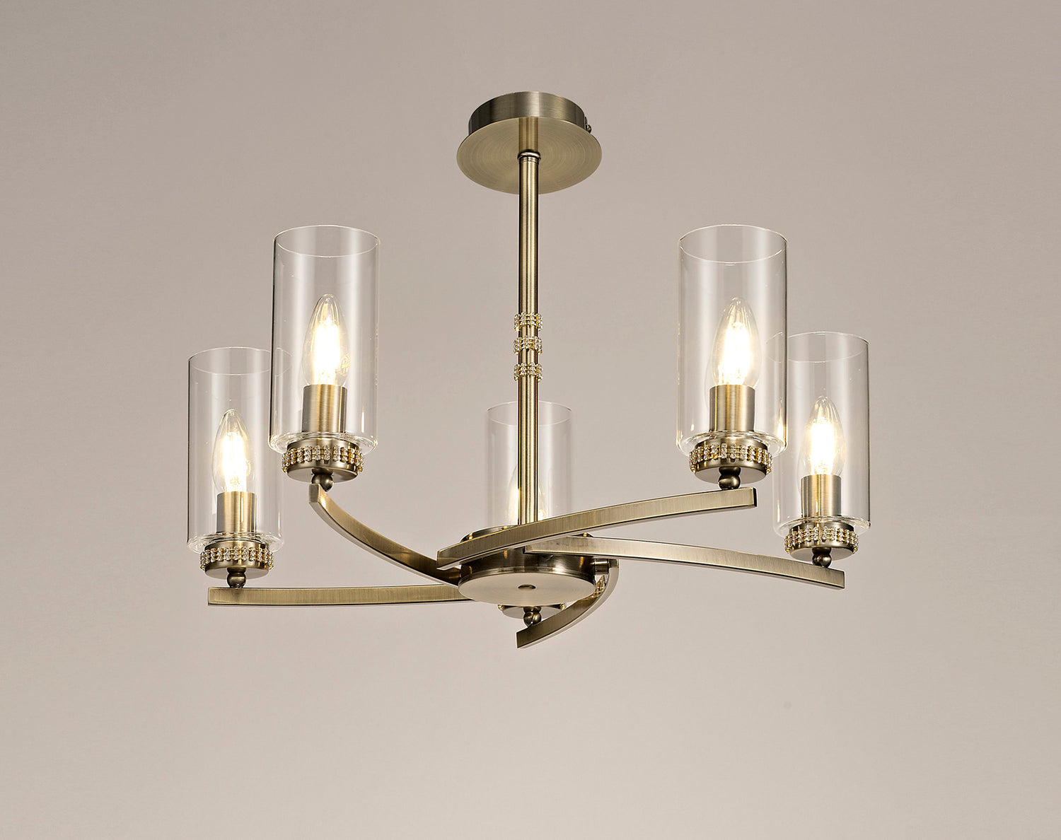 DAB6237 Dabih Pendant/Semi Ceiling 5 Light in a Antique Brass/Clear Finish and Clear Crystal