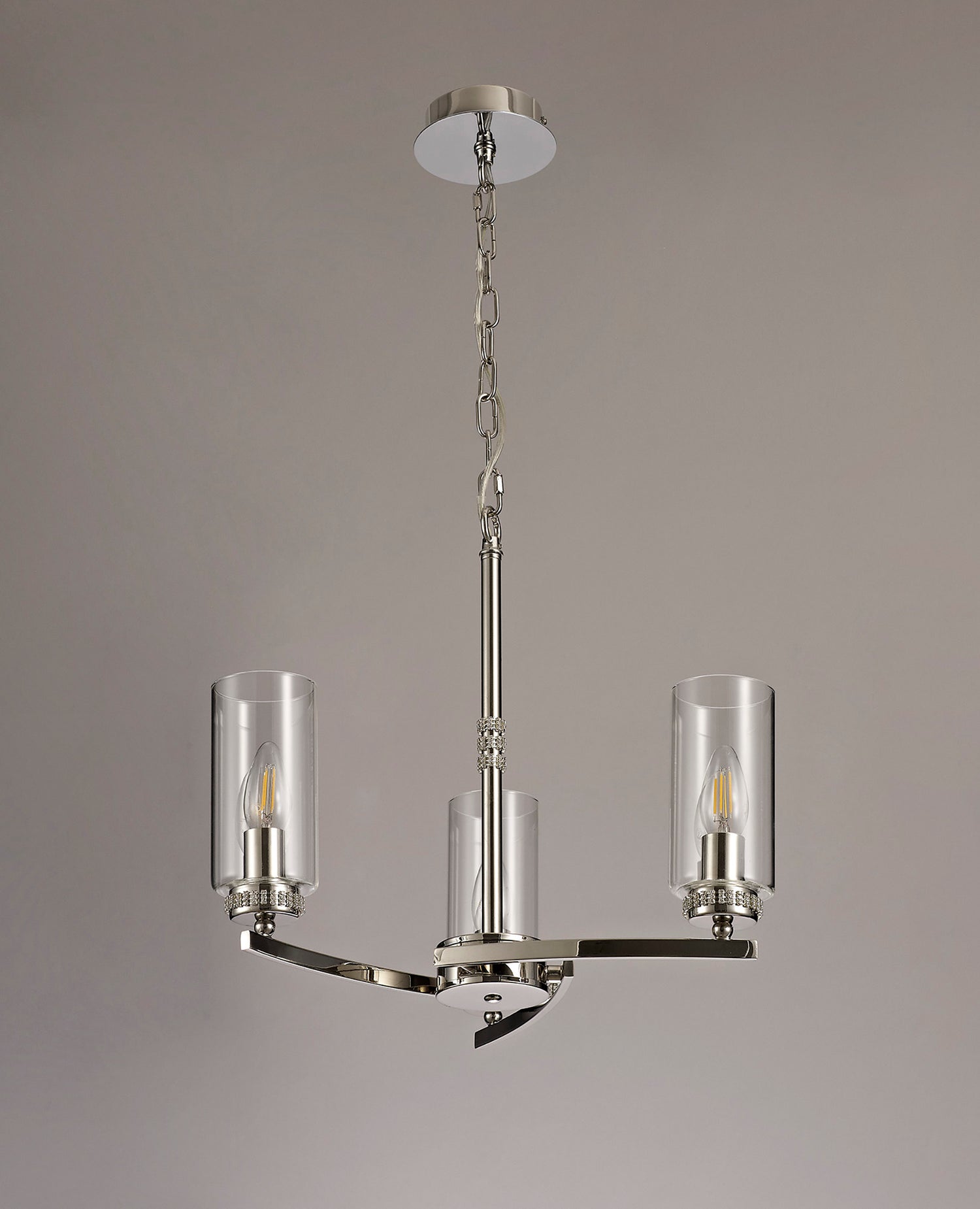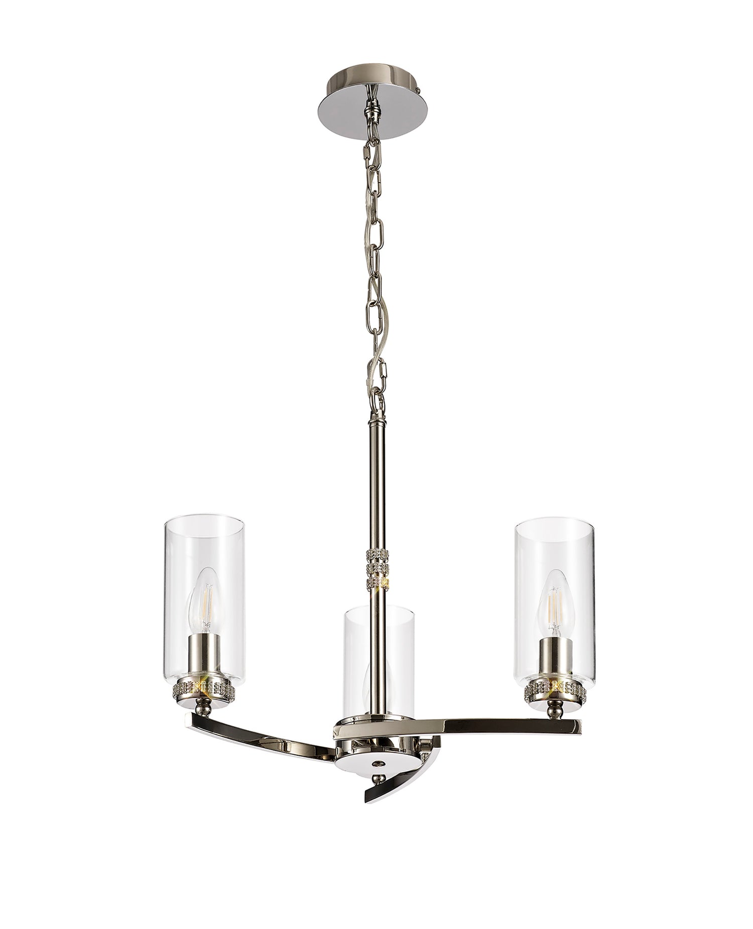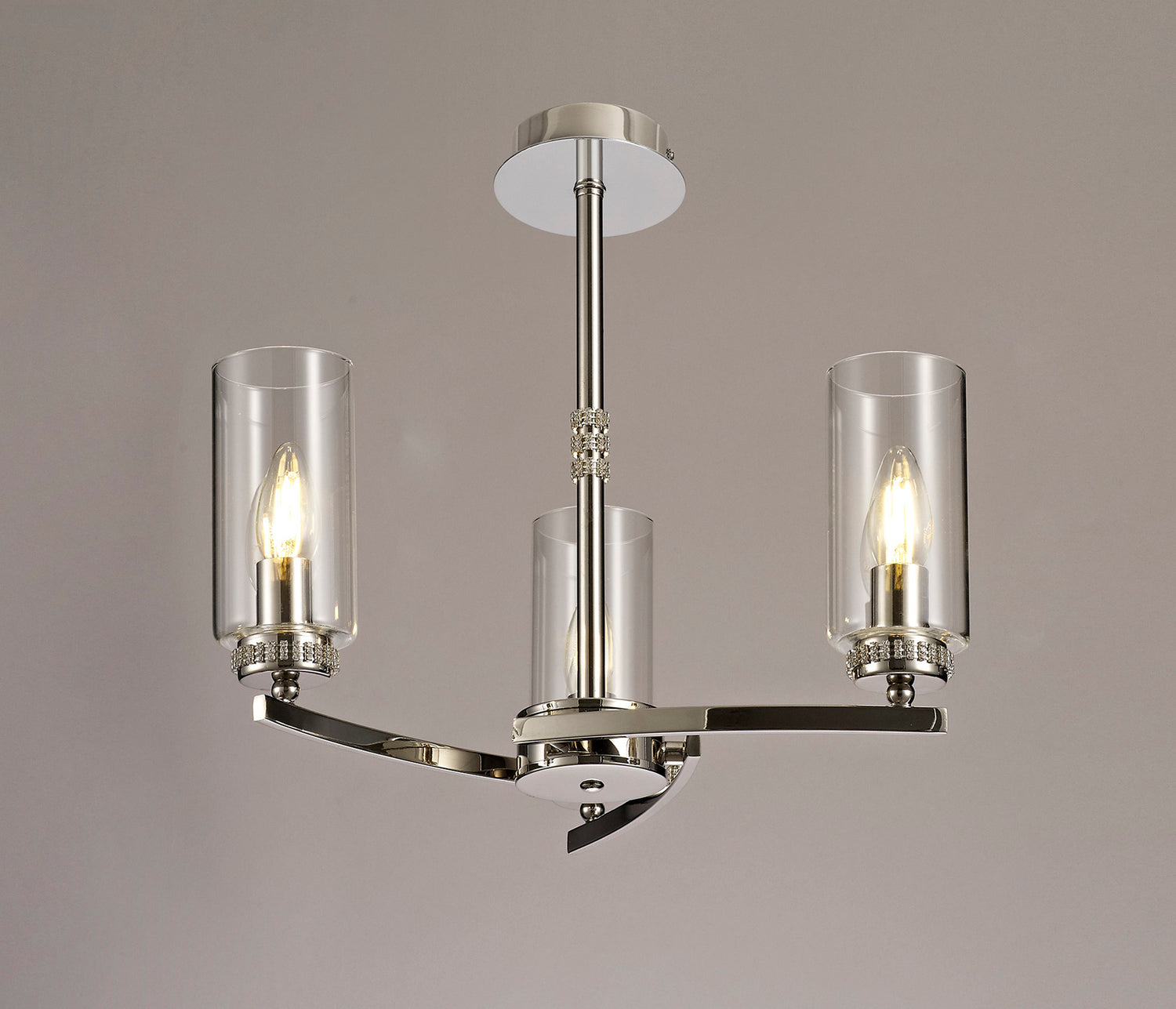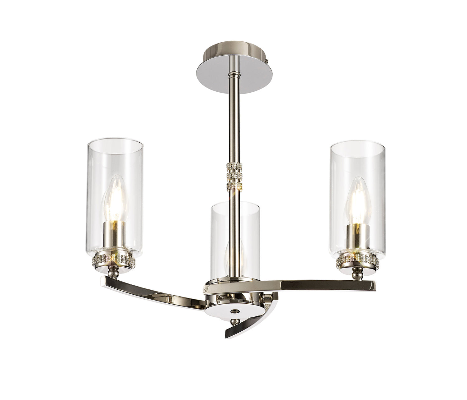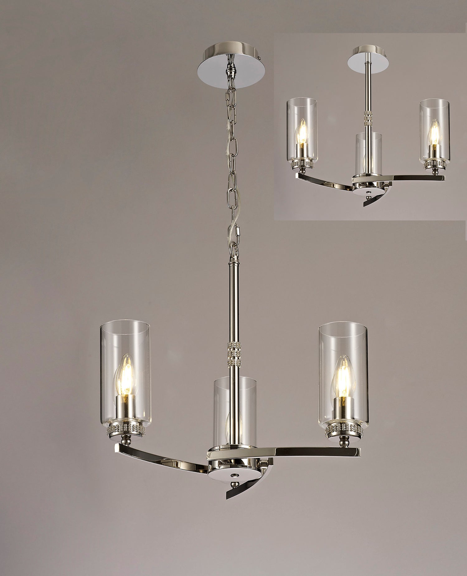 DAB9037 Dabih Pendant/Semi Ceiling 3 Light in a Polished Nickel/Clear Finish and Clear Crystal