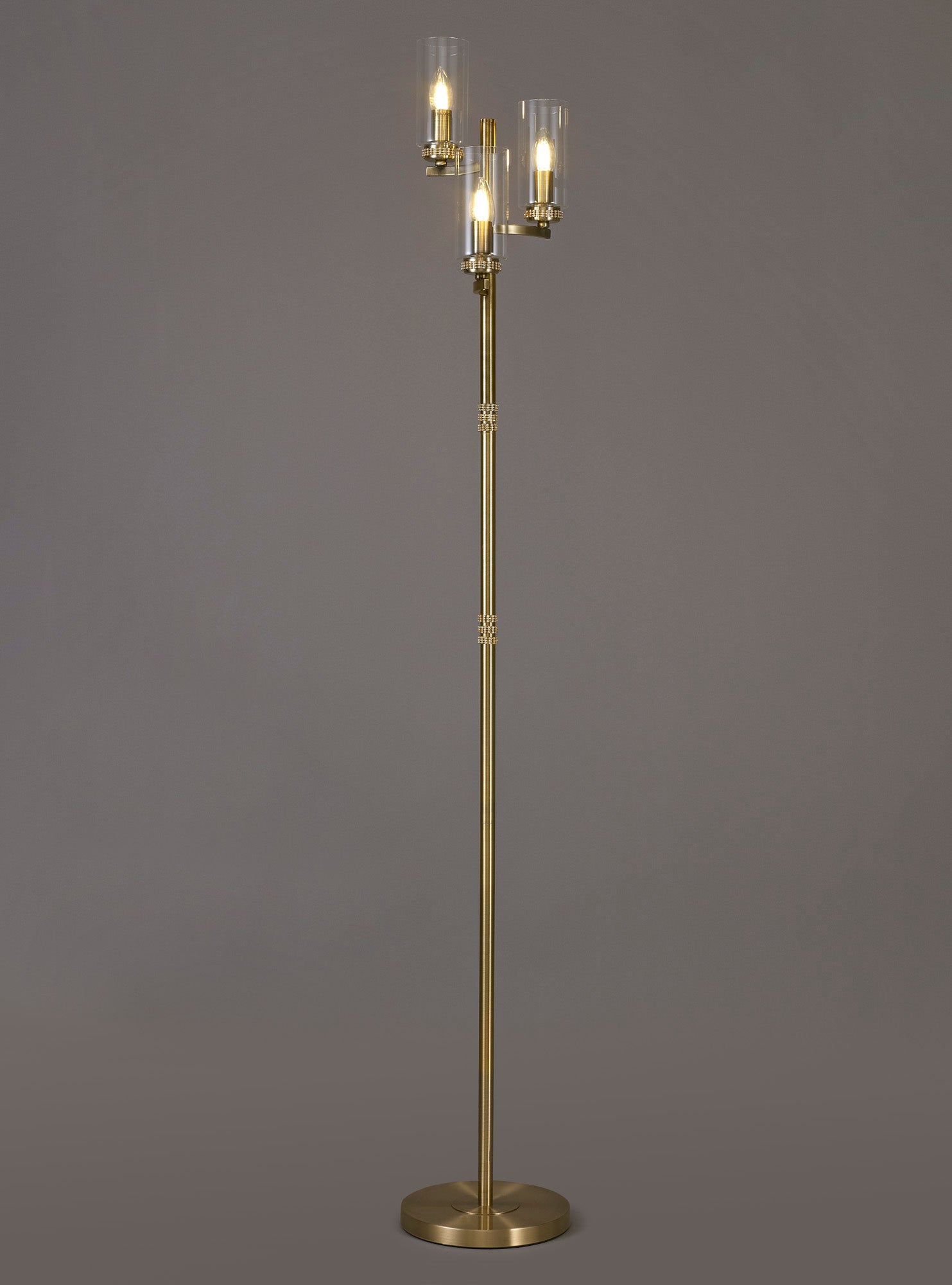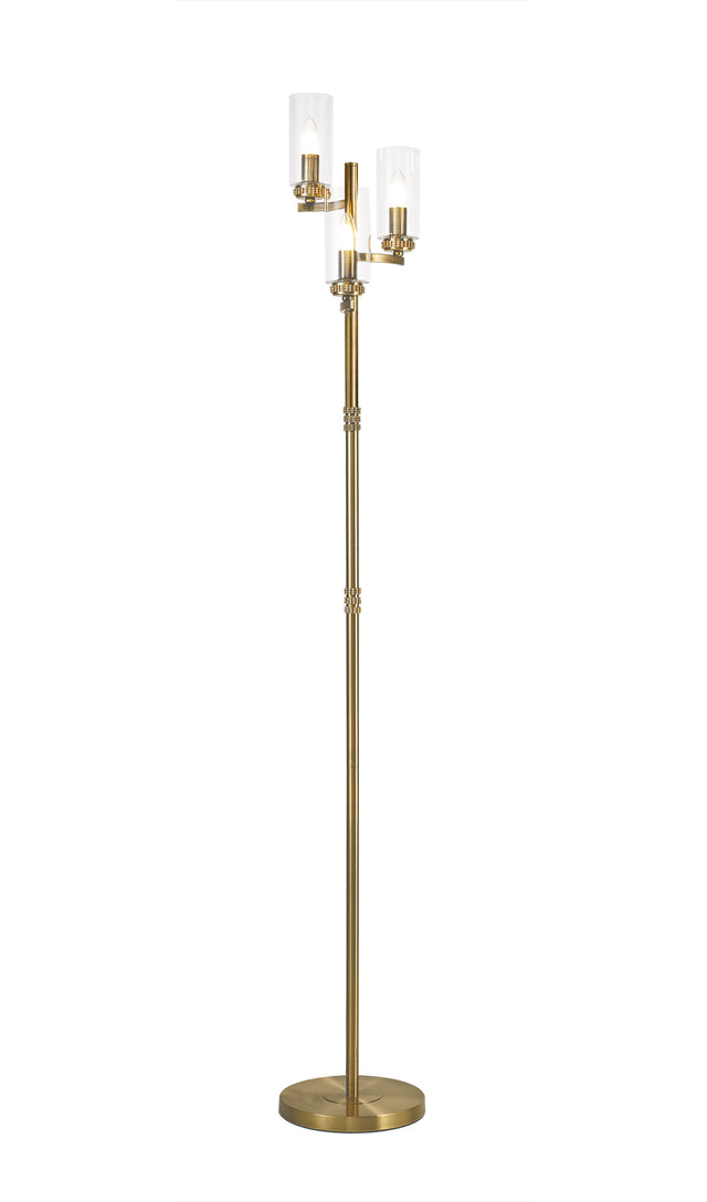 DAB9537 Dabih 170cm Floor Lamp 3 Light in a Antique Brass/Clear Finish